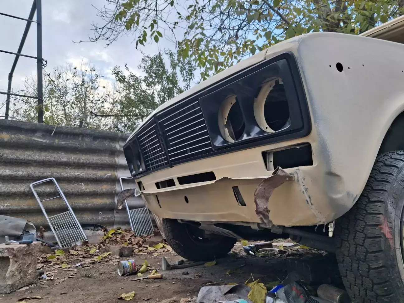 Фарба висохла за декілька днів , тому вирішив пройтися герметиком по швах, та накинути передню решітку. Стара металева решітка була вже вся подерта та поламана. купив нову, пластикову чорну.