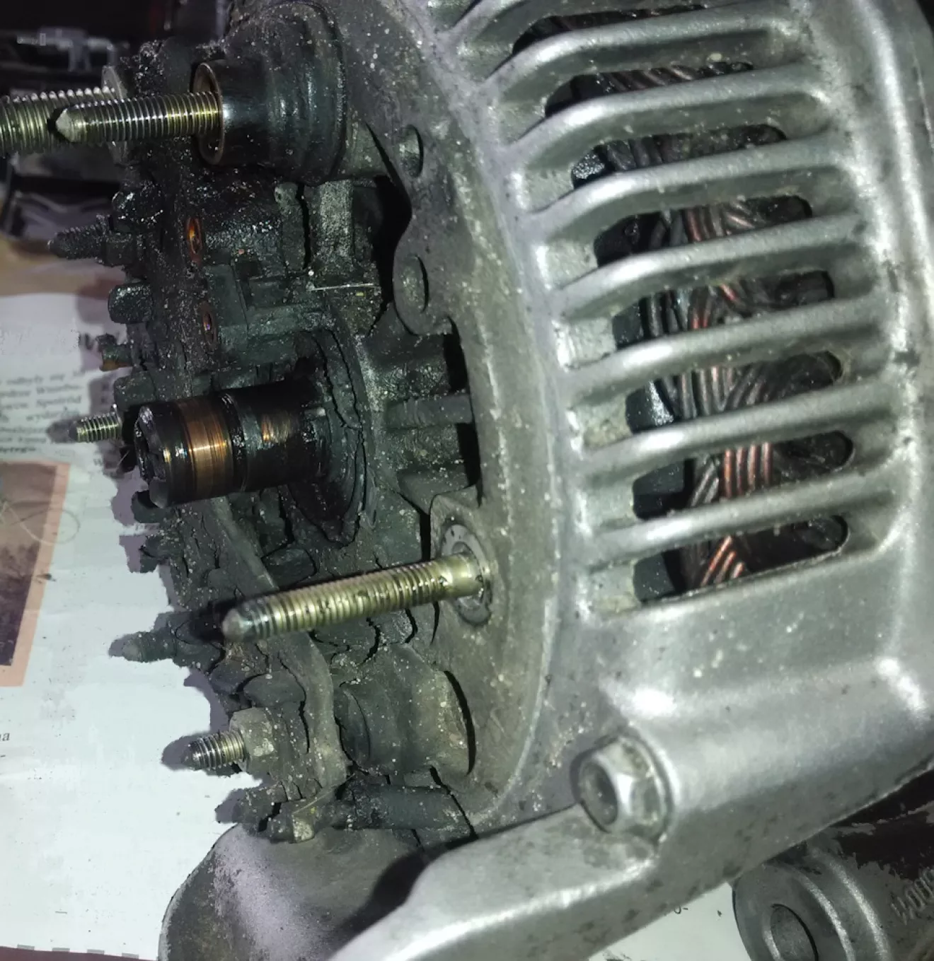 Выбрал свободный день для снятия генератора, после вскрытия оказалось что там много грязи с маслом и износ щеток.
