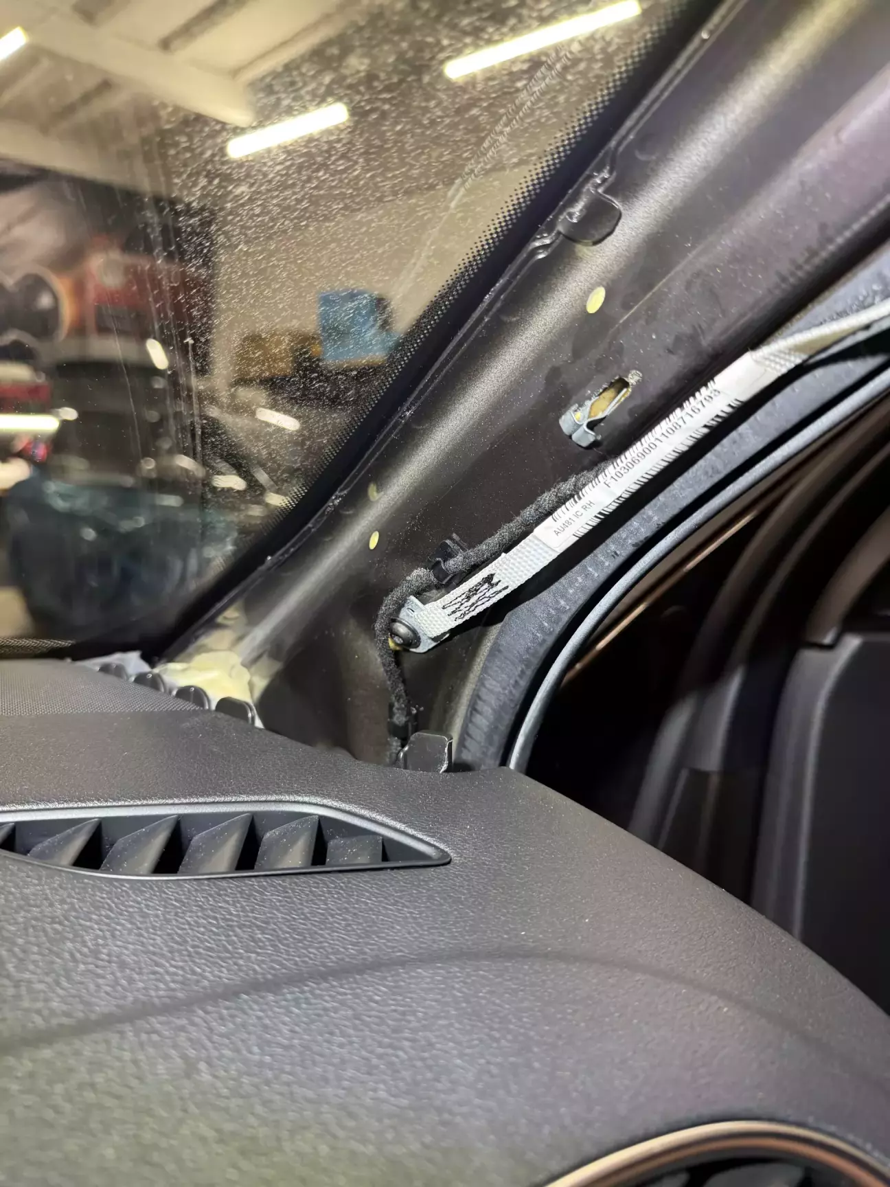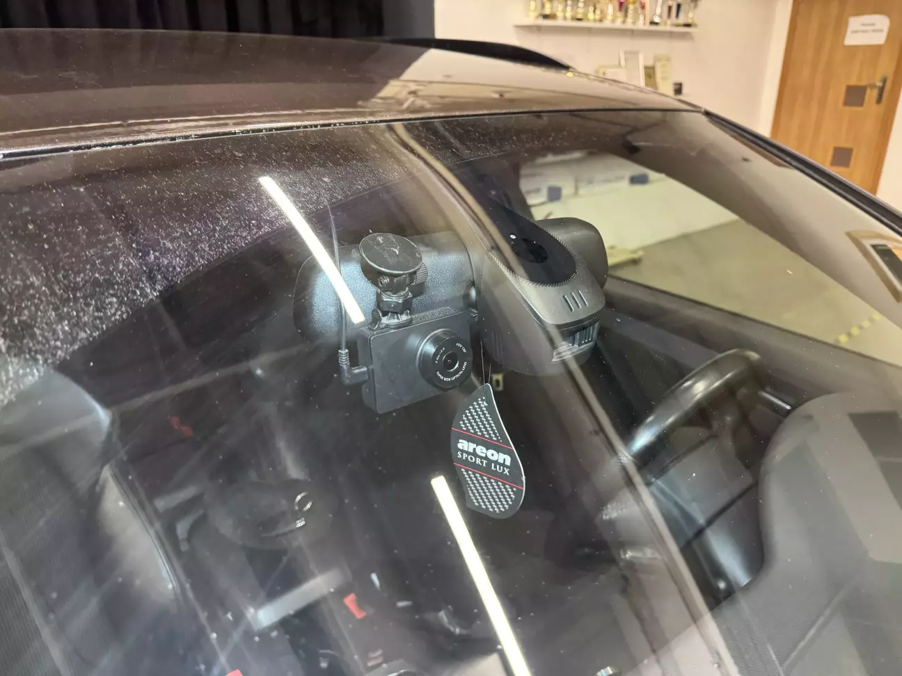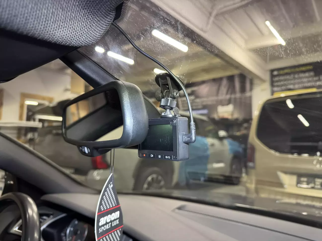 Реєстратор приклеїв за дзеркалом заднього огляду, щоб менше кидався в очі та сховав кабель під обшивками.
