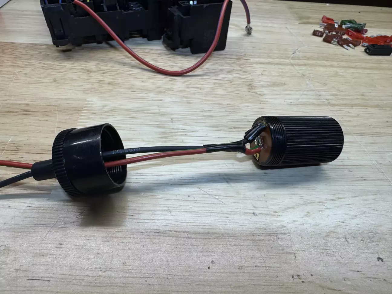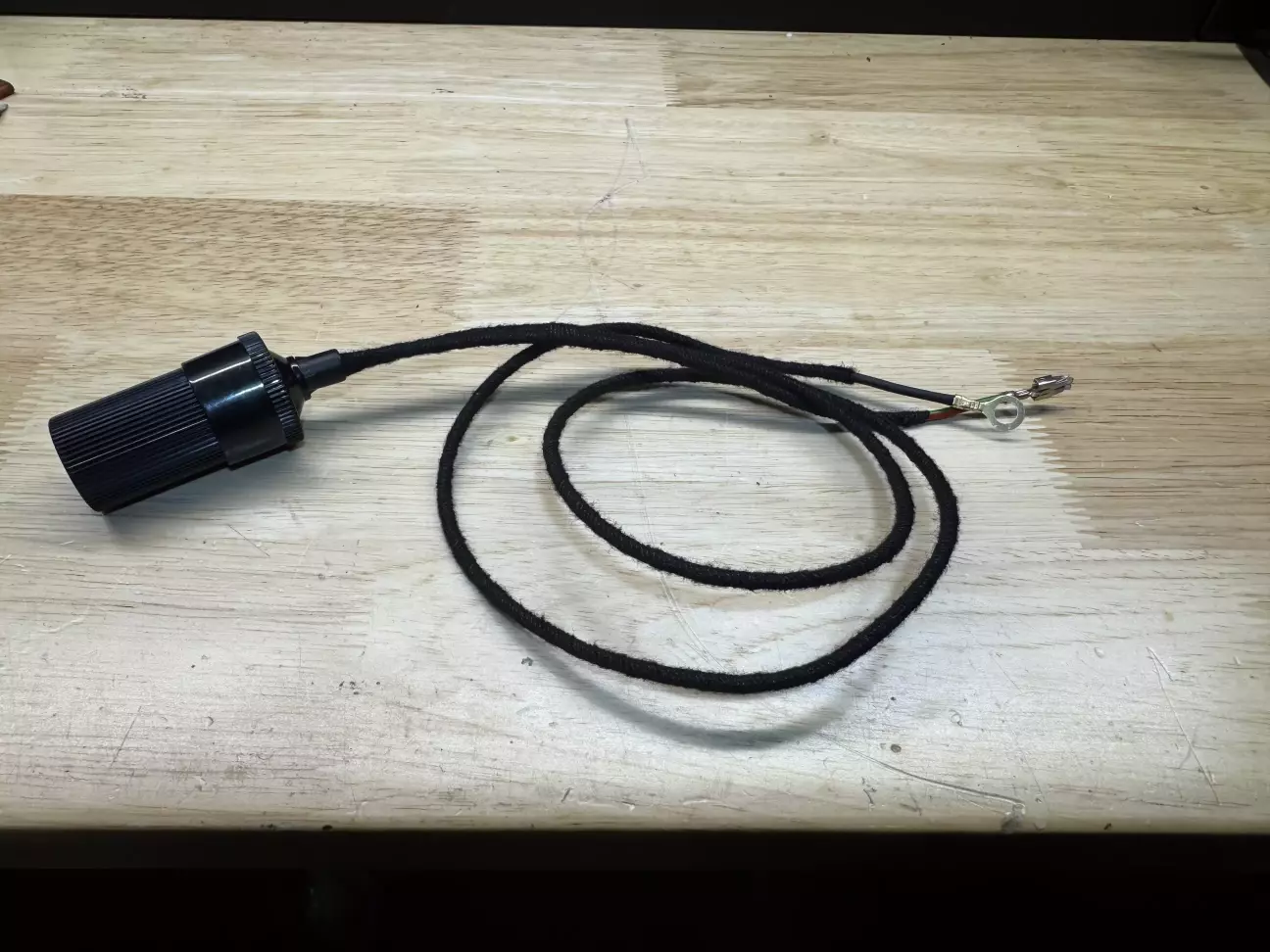 До кабеля припаяв розетку прикурювача, а мінус підключив до штатного в порогу.