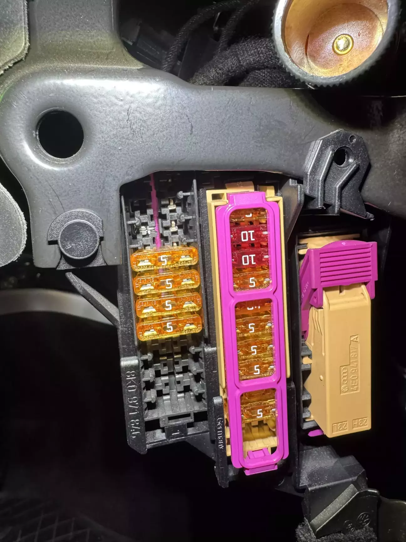 + підключив в блоку запобіжників з правої сторони. На запобіжниках з ліва зʼявляється + коли вімкнине запалення. Далі взяв клему і встановив в блок запобіжників