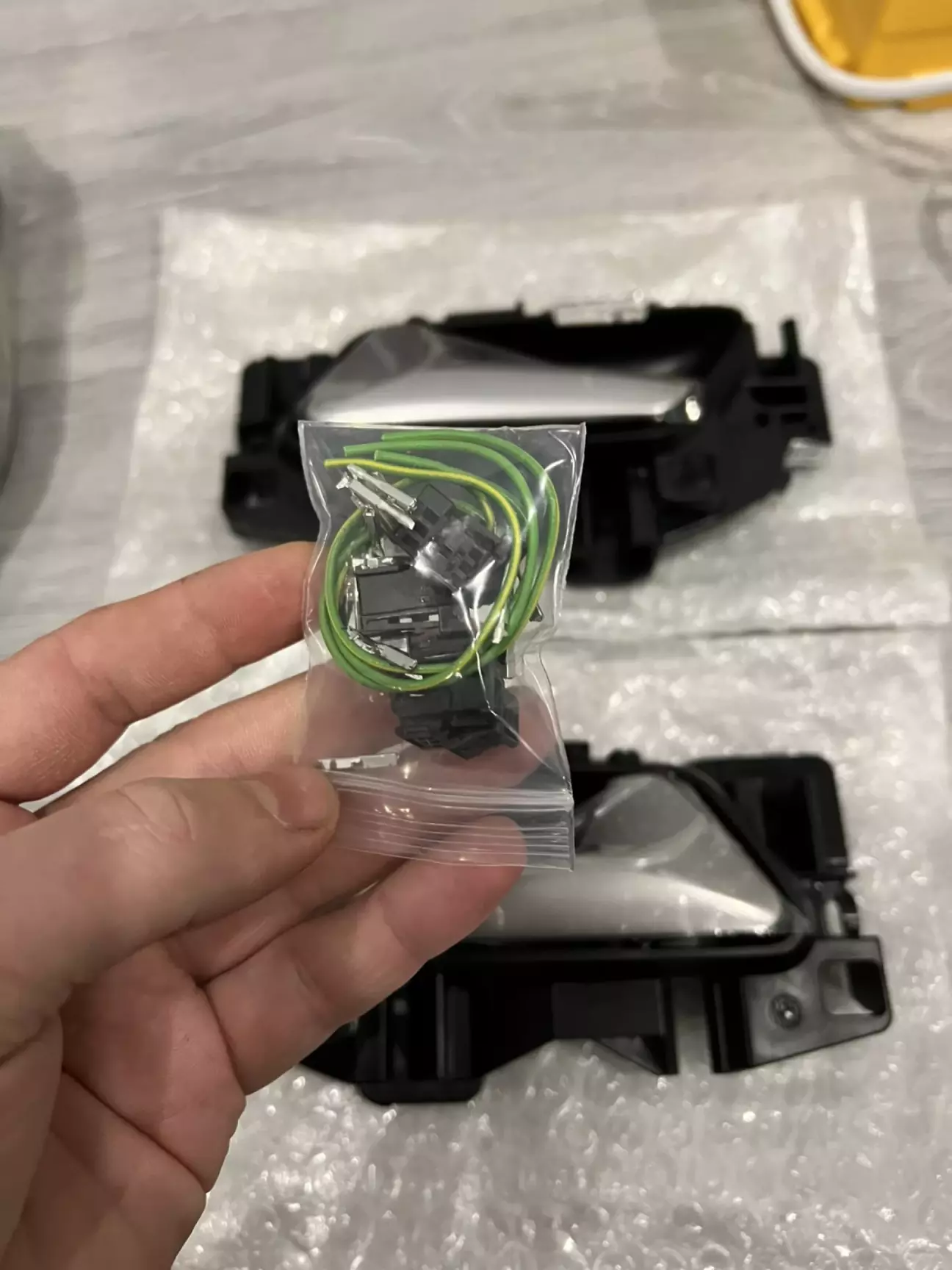 Тепер потрібно вирішити як реалізувати електричну частину. Звичайно тут кожен для себе вирішить сам. Особисто я, обжав на нові контакти проводку і штатної підсвітки і підсвітки ручок. Там фішка на 3 контакти, по факту задіяно 2, нам потрібен 1 та 3.