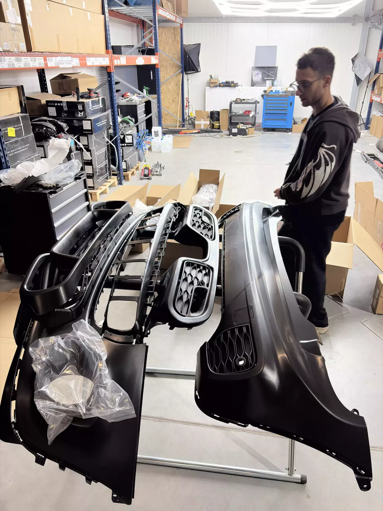 Далі – сталось смс якого я чекав півроку. Мій добрий друг який купував і привозив мені міні зараз працює в tuningbaza, і йому я колись заікнувся, що хочу нарешті перейти на JCW лук. І ось СМС – "ми отримали в наявність, їдь забирай".