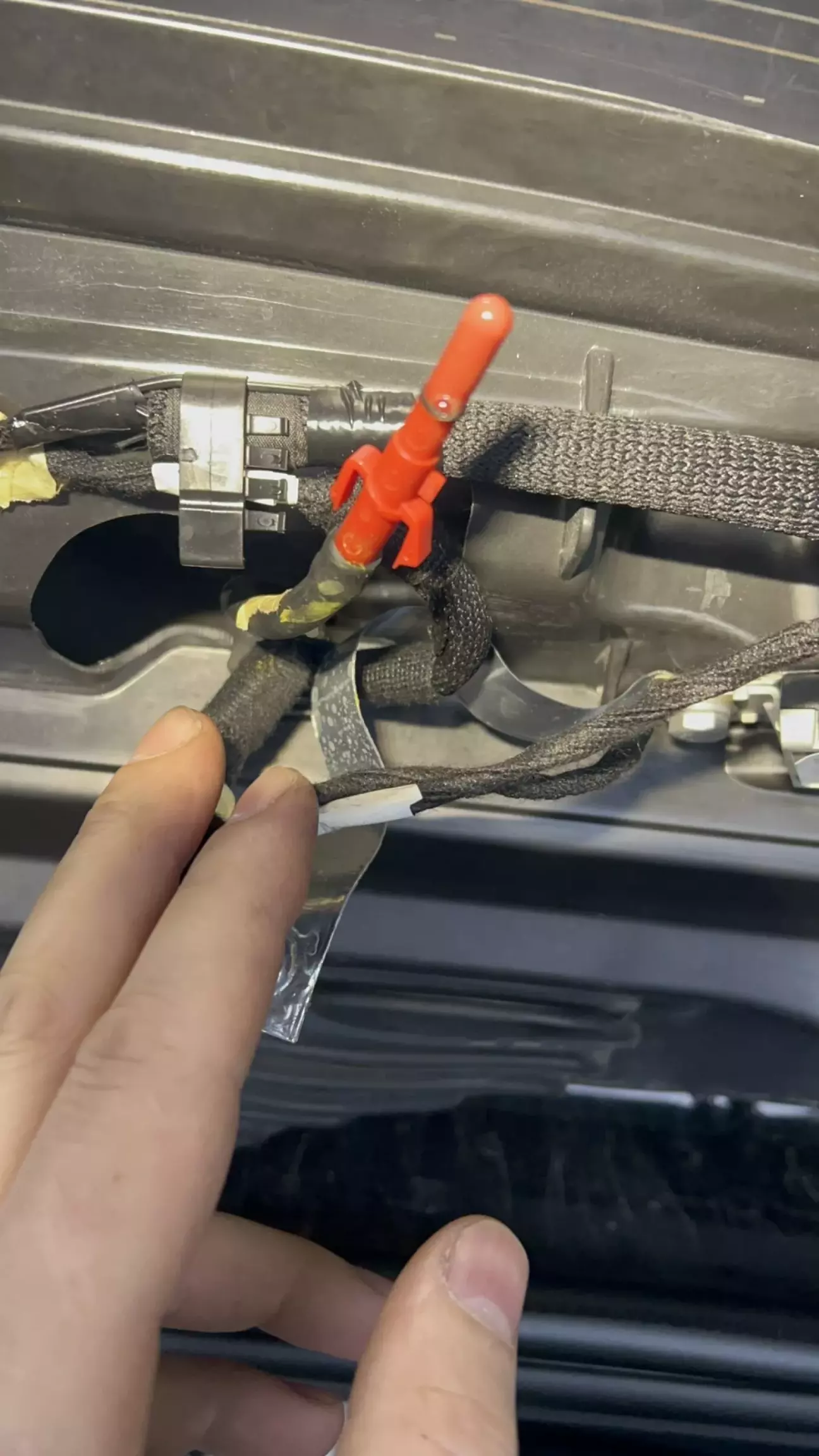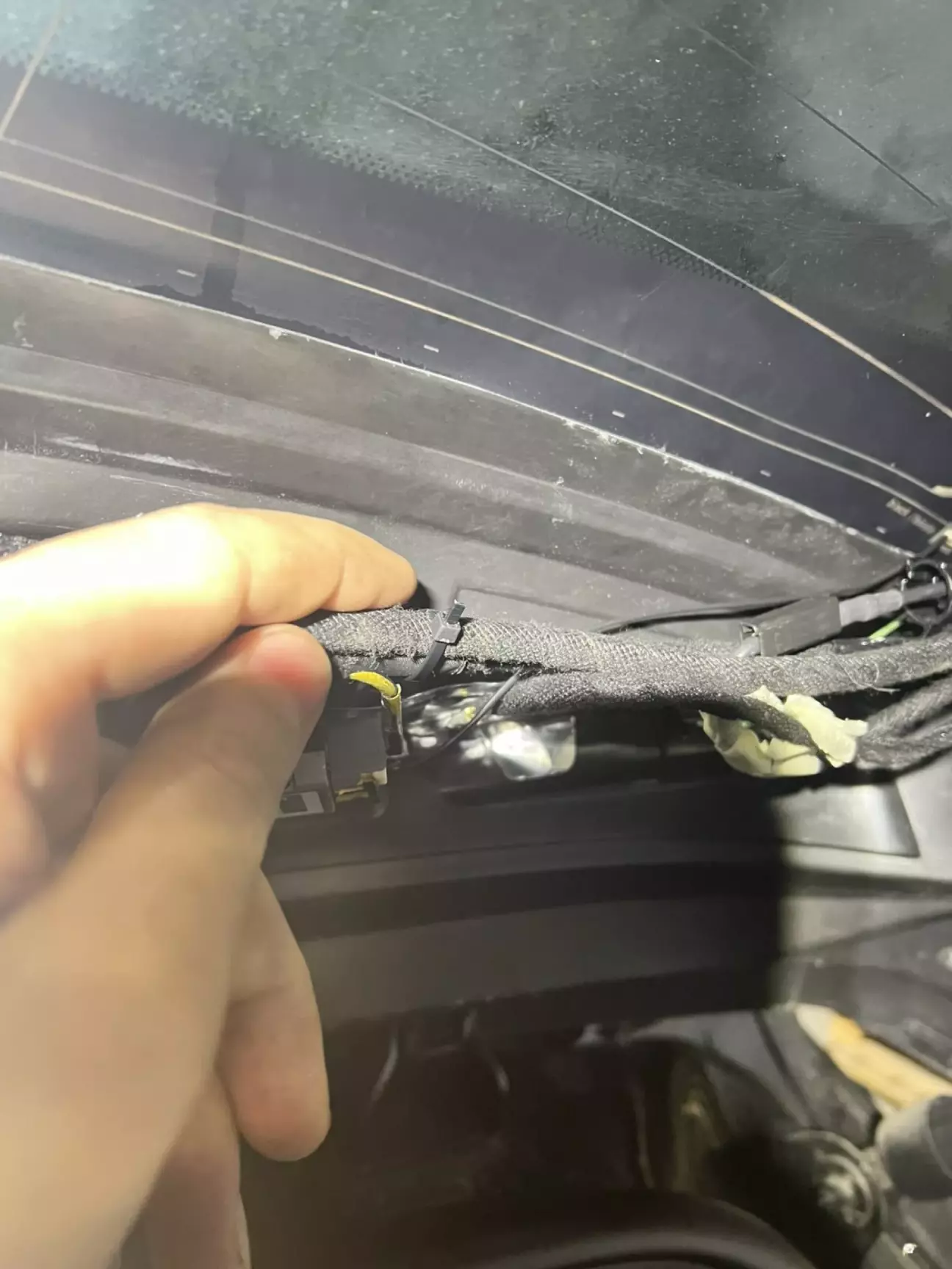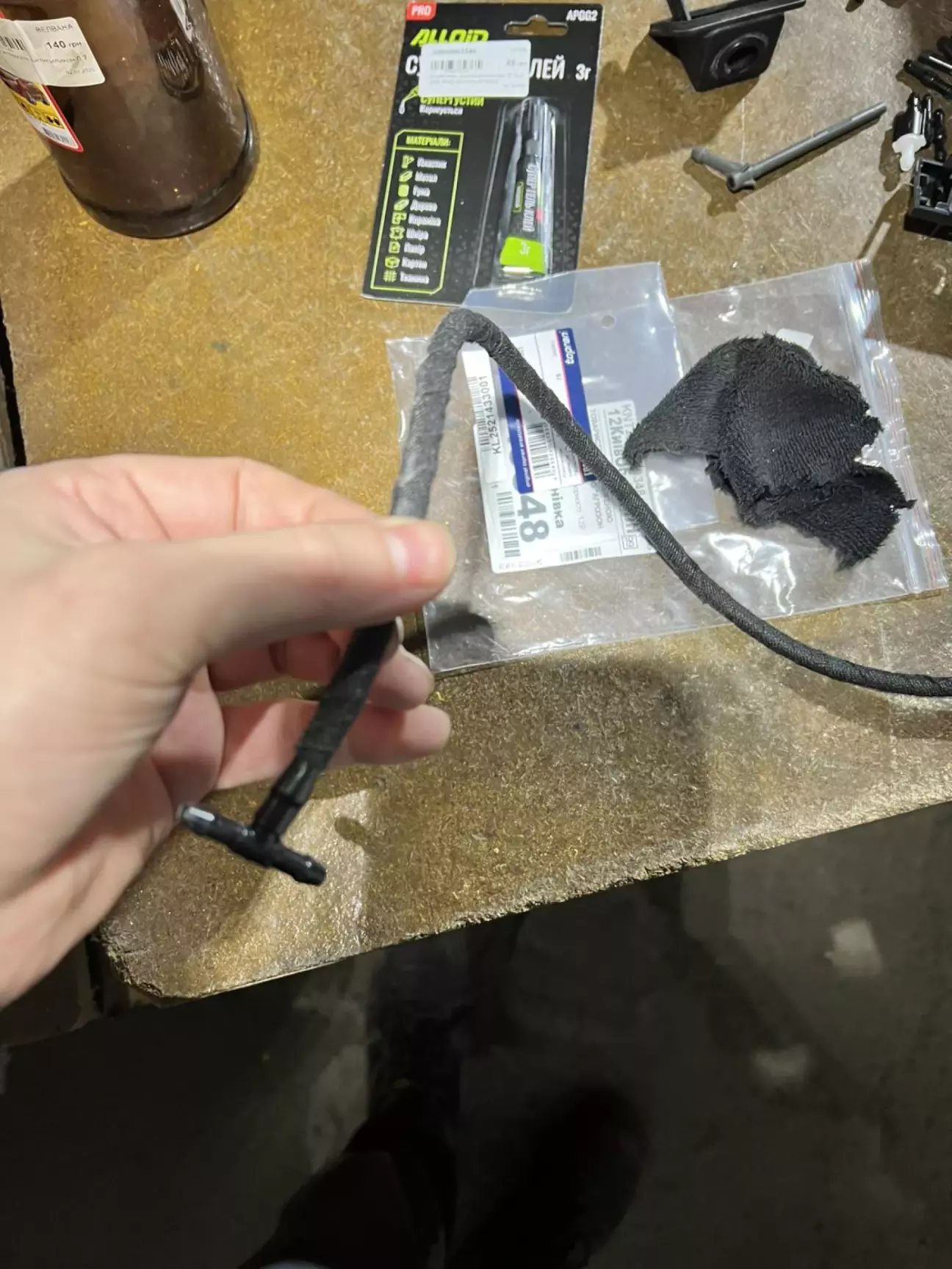 2) Дістаємо форсунку омивача заднього вікна/монтуємо тройніка і від нього женемо магістраль на задню кришку багажника через праву стійку. Заводив магістраль у стійку через трос, далі по штатній проводці на монтажній стяжці.