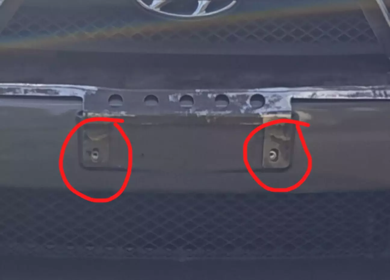 Для цього впресував різьбові заклепки в пластик бамперу за рамкою номерного знаку, тепер на них тримається і сама рамка і пластина.