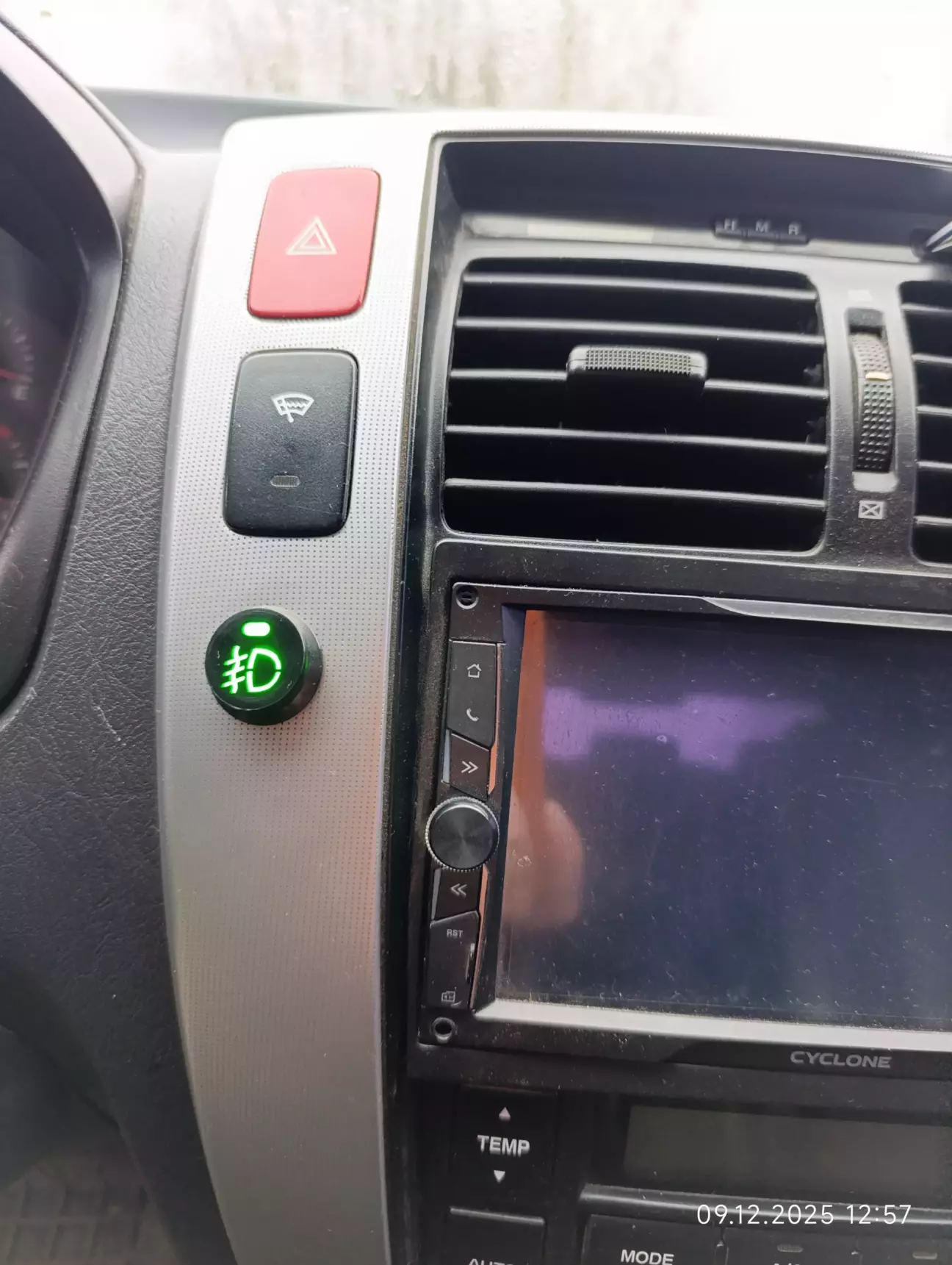 Під'єднав від USB зарядки, яку встановлював раніше. Через реле, запобіжник, провід в горі все як положено. Під'єднував ввечері, під фонарик, та ще і спішив бо на роботу, тому фоток не робив. Кнопку замовляв з аліка, коли ввімкнута, підсвічується зеленим.