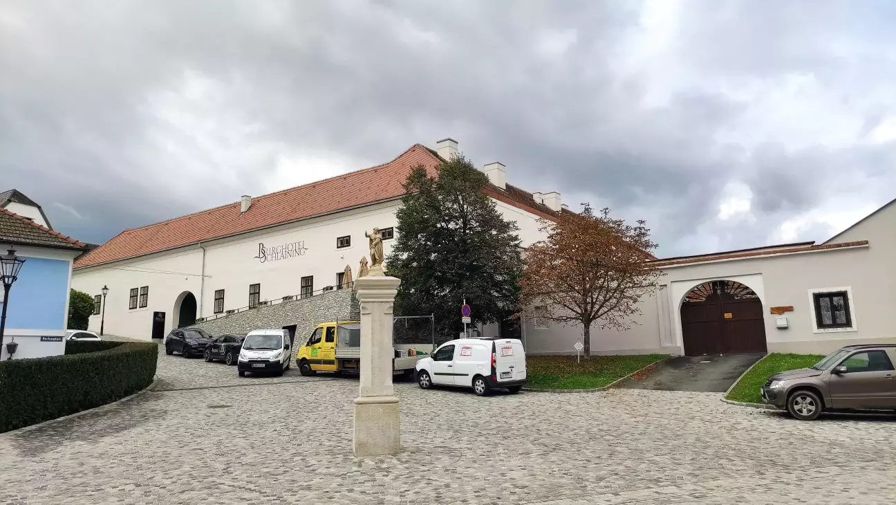 Після нього ми поїхали на схід, доки не зупинилися біля замку Шлайнінг, що вперше згадується в документах у 1271му р. Назва поступово змінювалася, перш ніж офіційно стала відома під нинішньою назвою в 1786му р. Він розташовується на важливій дорозі, що веде з півночі на південь через Бернштайнський хребет. Після масштабної реконструкції замок тепер є домівкою для Інституту миру та ювілейної виставки з нагоди 100-річчя приєднання Бургенланду до Австрії.