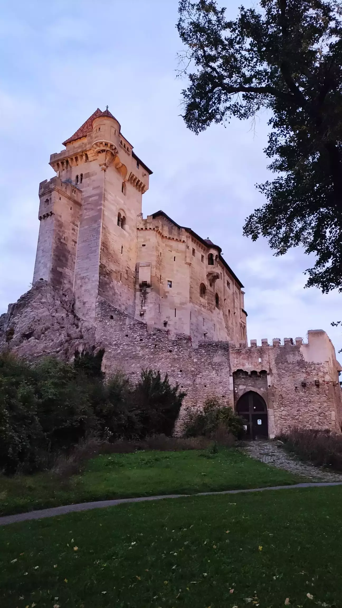 Вже темніло і останньою нашою цікавинкою в цей день став замок Ліхтенштайн на південно-західній околиці Відня. Він стоїть на скелястому хребті на висоті приблизно 300 м над рівнем моря і вперше був задокументований у 1330му р. Тут знаходиться родова резиденція дому Ліхтенштейнів, на честь якого названо князівство Ліхтенштейн. Незважаючи на значні інвестиції, замок Ліхтенштейн, подібно до Кройценштайна, більше не призначався для житлових цілей, а радше як архітектурна документація Середньовіччя.