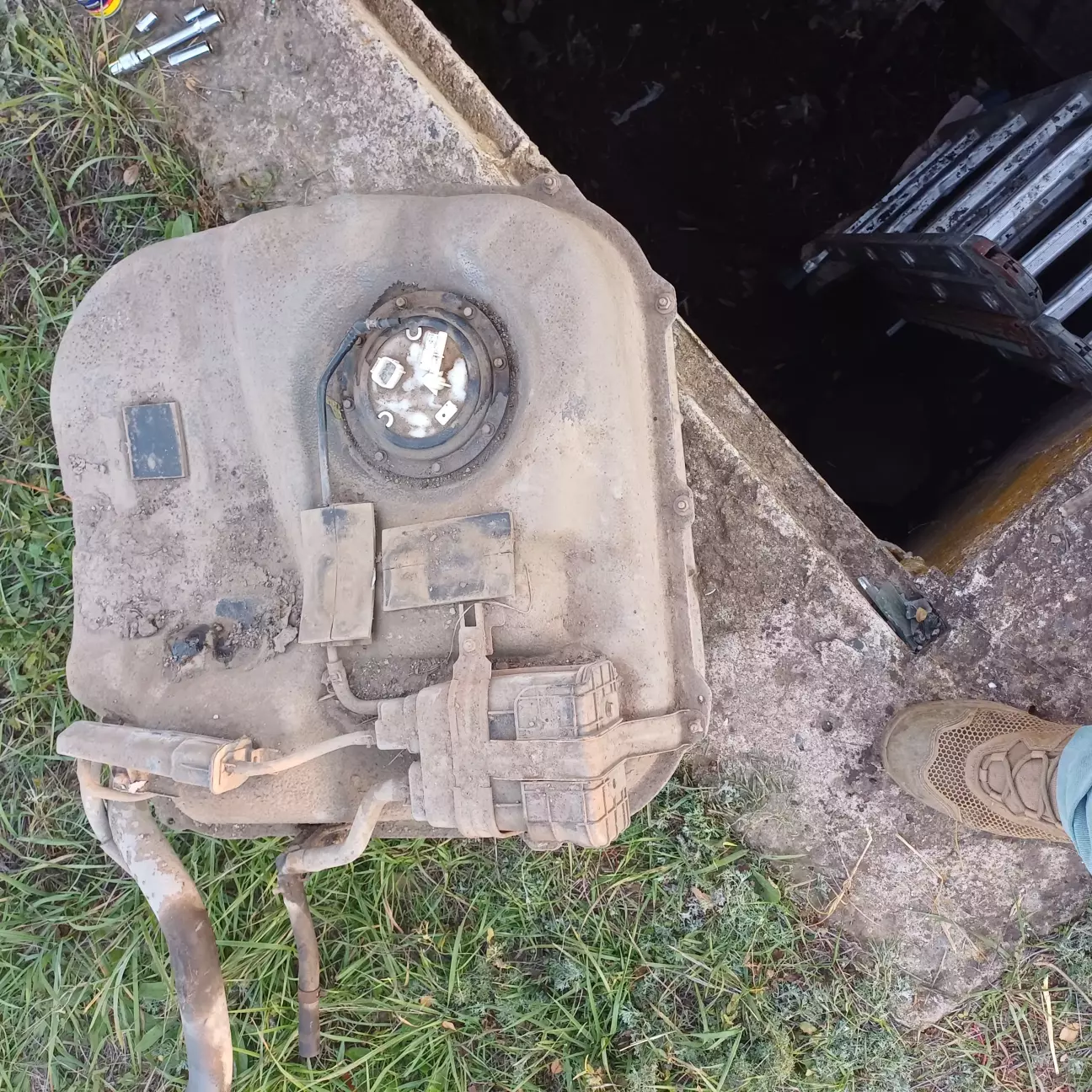 Від'єднавши бак від магістралів, демонтував його, злив 18л. бензина, промив, та відав на сварку.