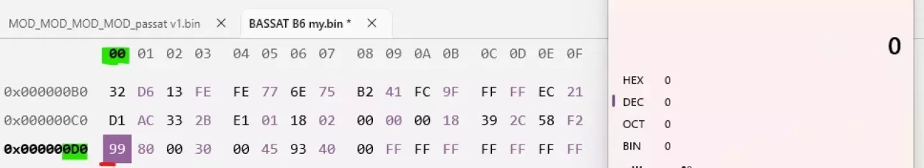 адреса 00D3 - Для активації 5-й біт повинен бути "0" 00X00000