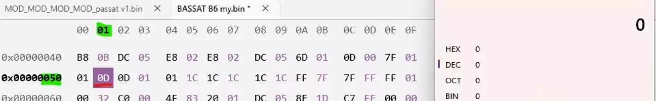 адреса 004F — при значенні 01 мова міняється в адресі 0х51, при значенні 02 мова міняється в адресі 0х052 (у моєму випадку в адресі 051)