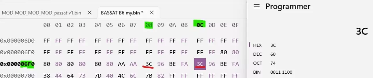шукаємо значення 6E в оній строці та замінюємо на значення 3С