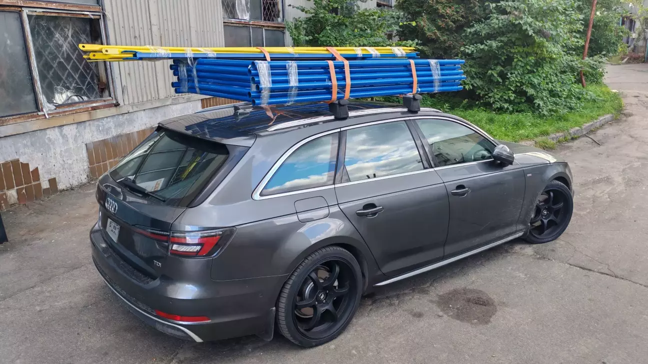 Вище я написав, що опори рейки від Audi Q5 8T співпадають із отворами у напрямних дажу Audi A4 B9 Avant на 75%. Виключення становить точка над водієм, що кронштейн Q5 має три шпільки для зачеплення, а в А4 передбачено лиш дві. Куди ж без дружини болгаріна?