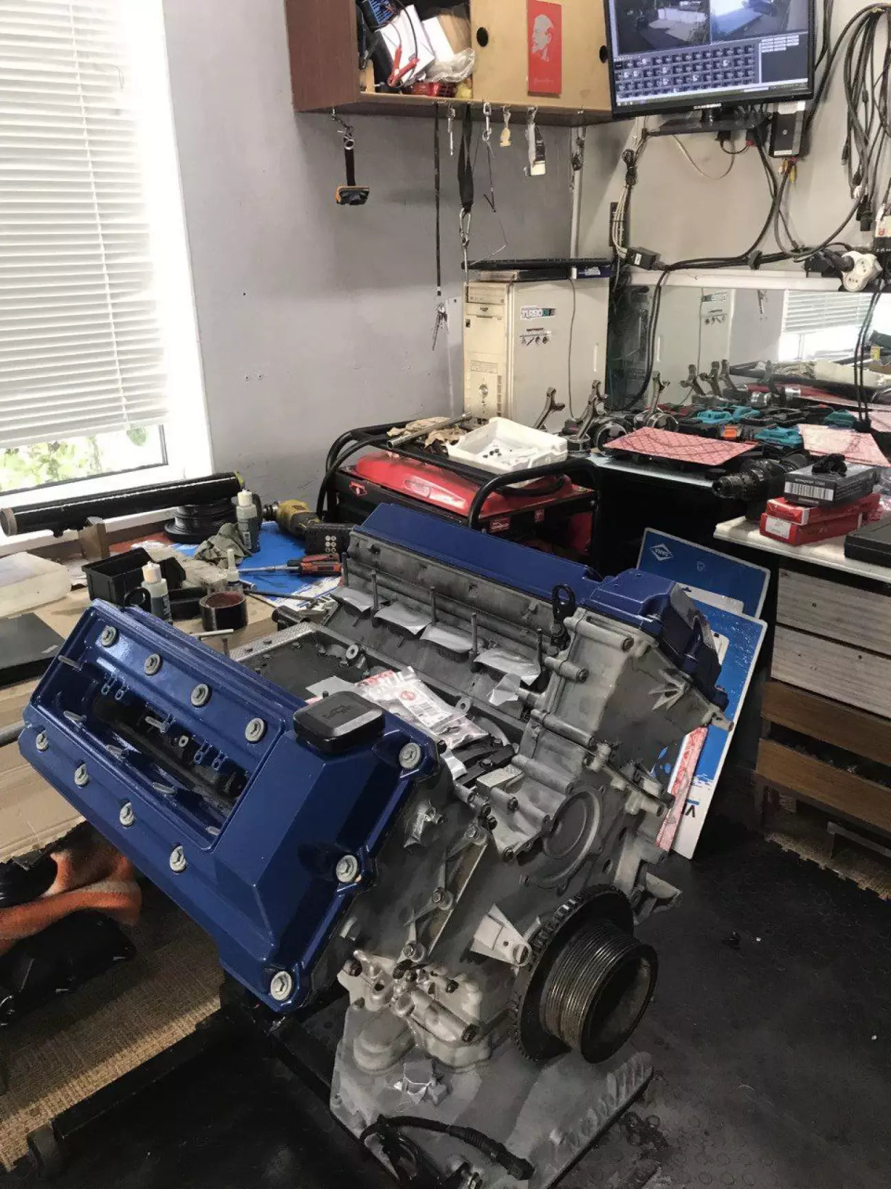 Дальнейшие планы открас подкапотки, разбор, достали двигатель, грязный в сопли, явно никто не трогал, ну чтож, сделали,откапиталили, с тех пор, мотор на складе..машина на подьемнике.