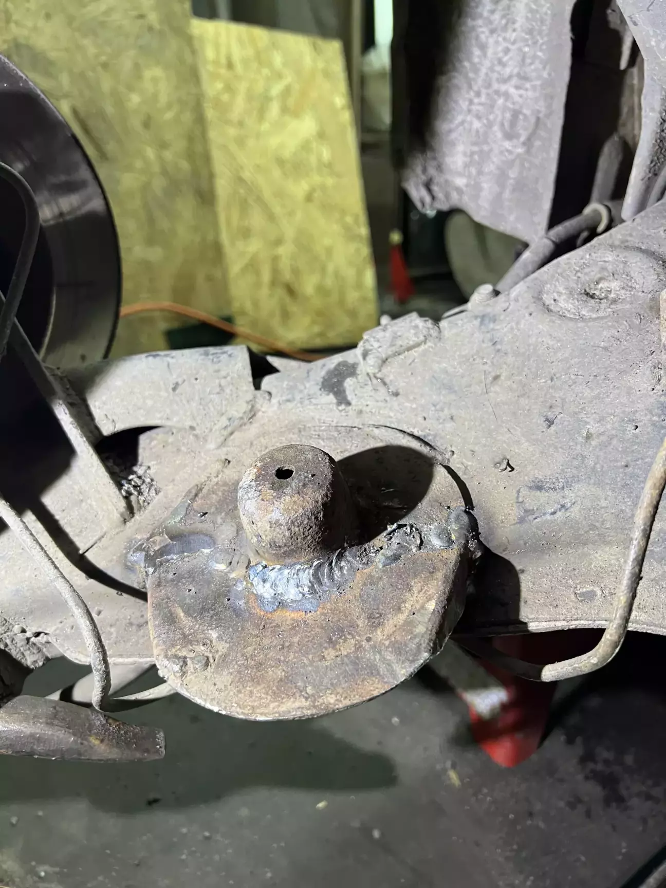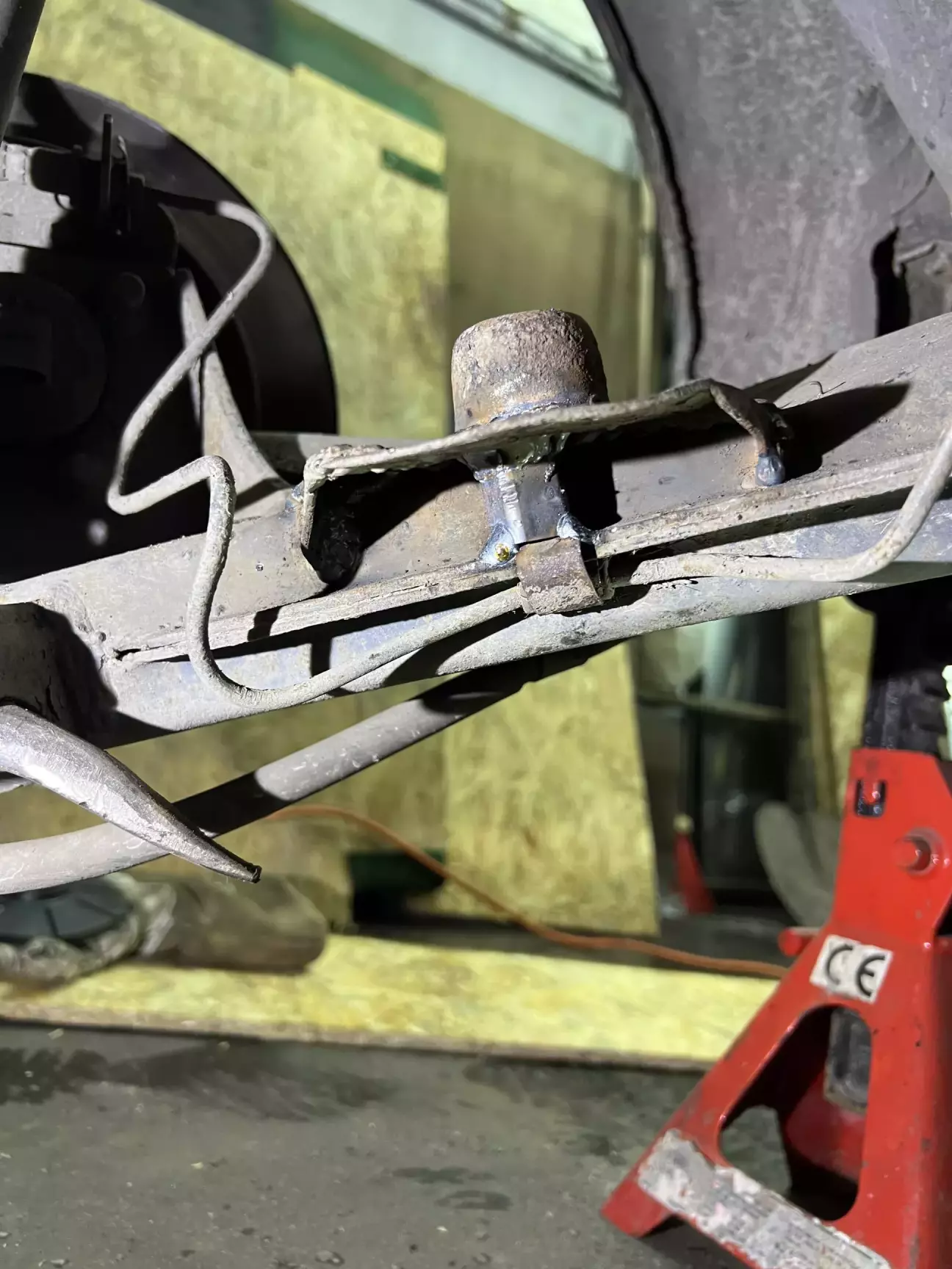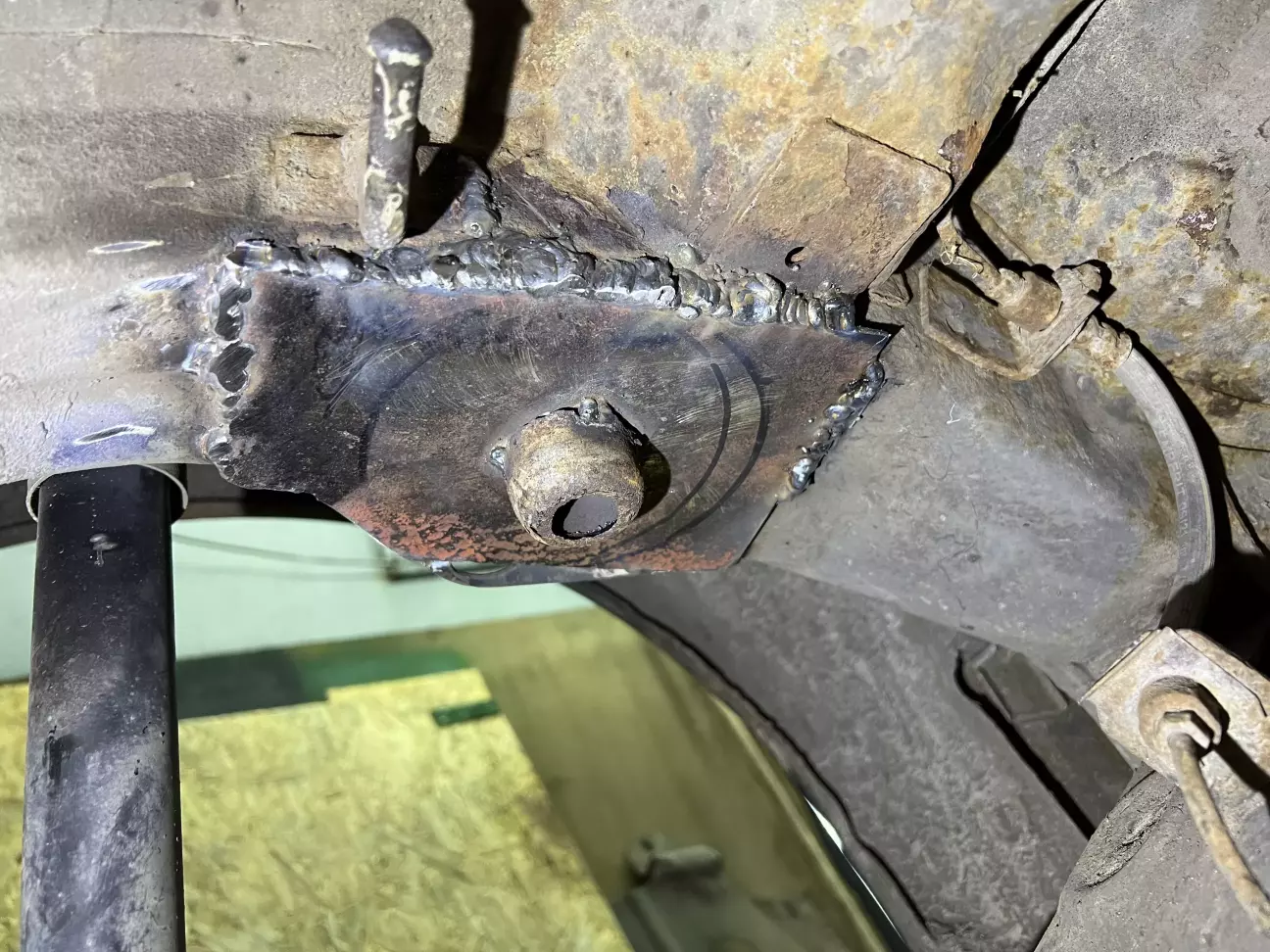 нижний блин на балке один был лопнут, его выгнул назад, обварил и под каждый еще приварил трубку 10.10 Как усилитель на всякий случай. Поставил новые резинки под пружины и все готово.