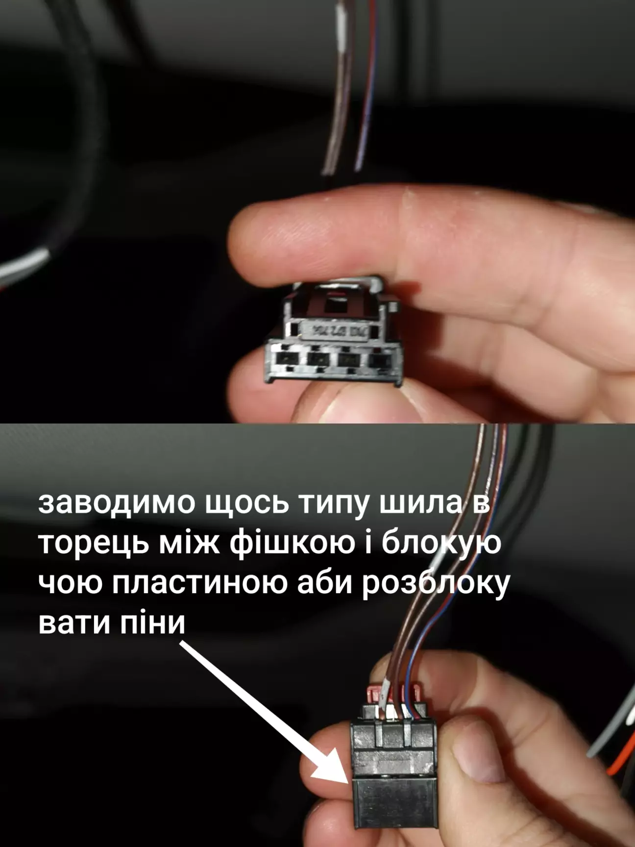 - фішка переднього плафону 1K0972928 і заднього плафону - 4B0971978B (аналог 1719684-1). Можна замовити також фішку папа для виготовлення перехідника і не чіпати передню фішку для економії часу - 6Q0972716. Я не дочекався. Локально дуже дорого, краще завчасно замовити на Алі;