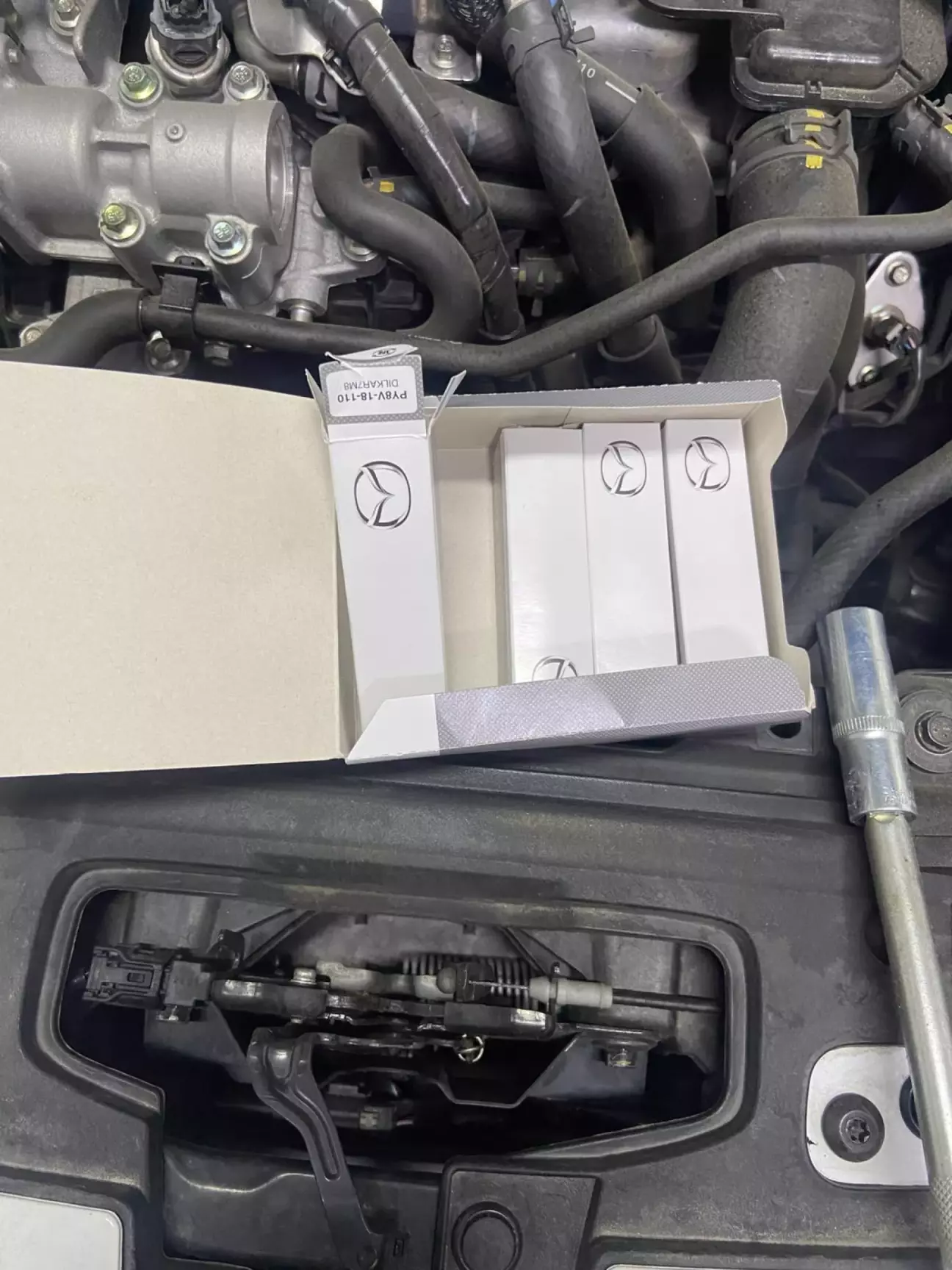 42500 на приборці, з літа наїздив почті 7к, ну і так як це турбо рисовозка, то вирішив ТО робити раз в 7к. Є людина зі своїм гаражиком, яка мені все це робить, також, прийшло в голову, що напевно, потрібна вже заміна свічок, бо заводилась трошки тяжковато, і я не прогадав, свічки були вже з великими зазорами, і взагалі нікудишні, тому було рішення замовити оригінали, чекали 2 дні. Коли зливали масло, воно також було дуже чорне, тому, раз в 7к заміна це гарна ідея, якщо на машинку не пофіг) Заливаємо оригінал мазду 5в30, притому великої каністри може не хватати, в мене завжди прозапас в багажнику є ще літрова каністерка, щоб після запуску, ще трішки долити.