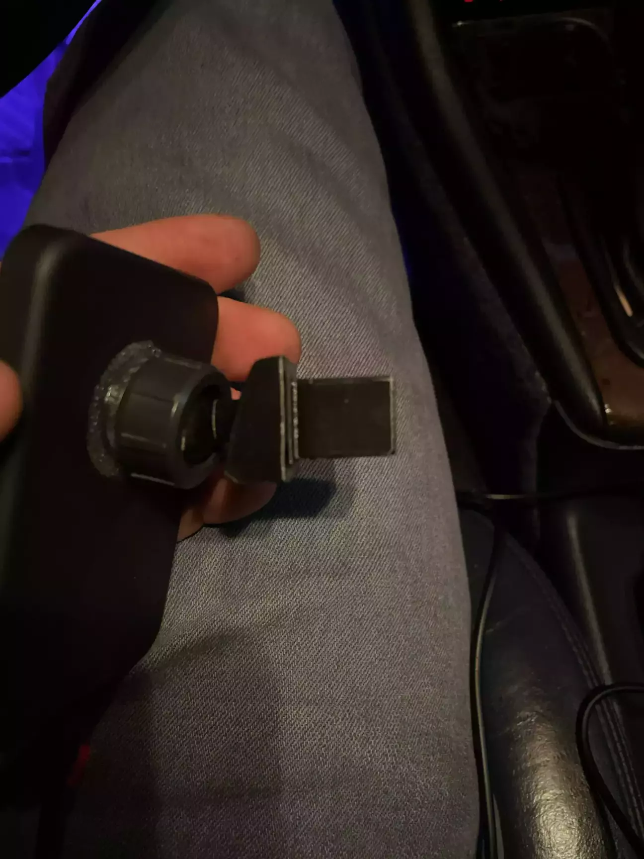 Приміряли замість заглушки. Взагалі по моделі вона була під праву заглушку, але, оскільки в мене там є кнопка, то Льоха віддзеркалив під праву, де в мене реально була заглушка. Дизайном, звісно вибивається) але в неї і нема задачі бути один в один, тому що все одно вона повність закривається зарядкою.
