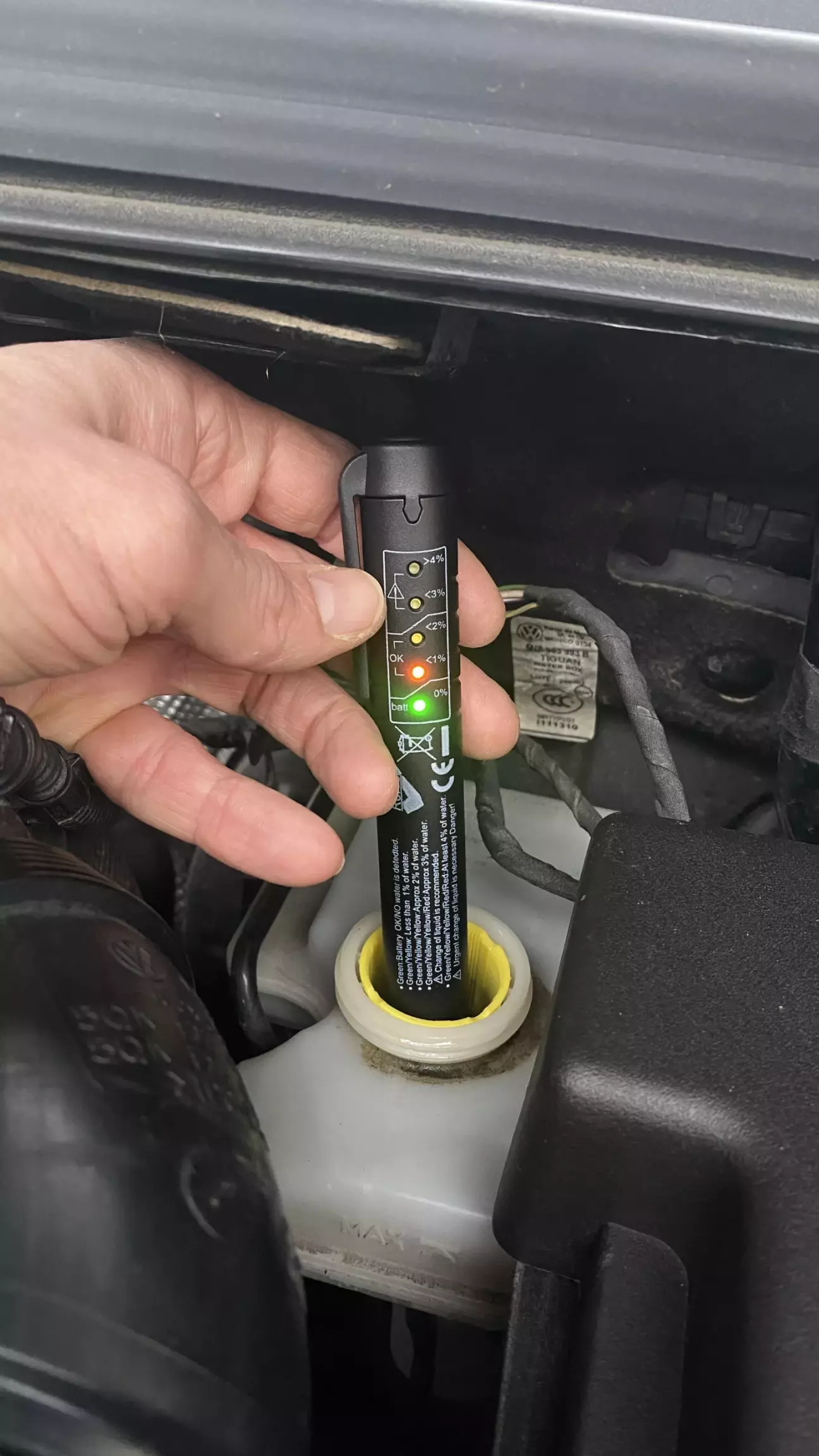 Далі пішла гальмівна рідина, тут все простіше, тестер опускаєш в бачок, маєш світлодіод показує OK або ні в відсотках )