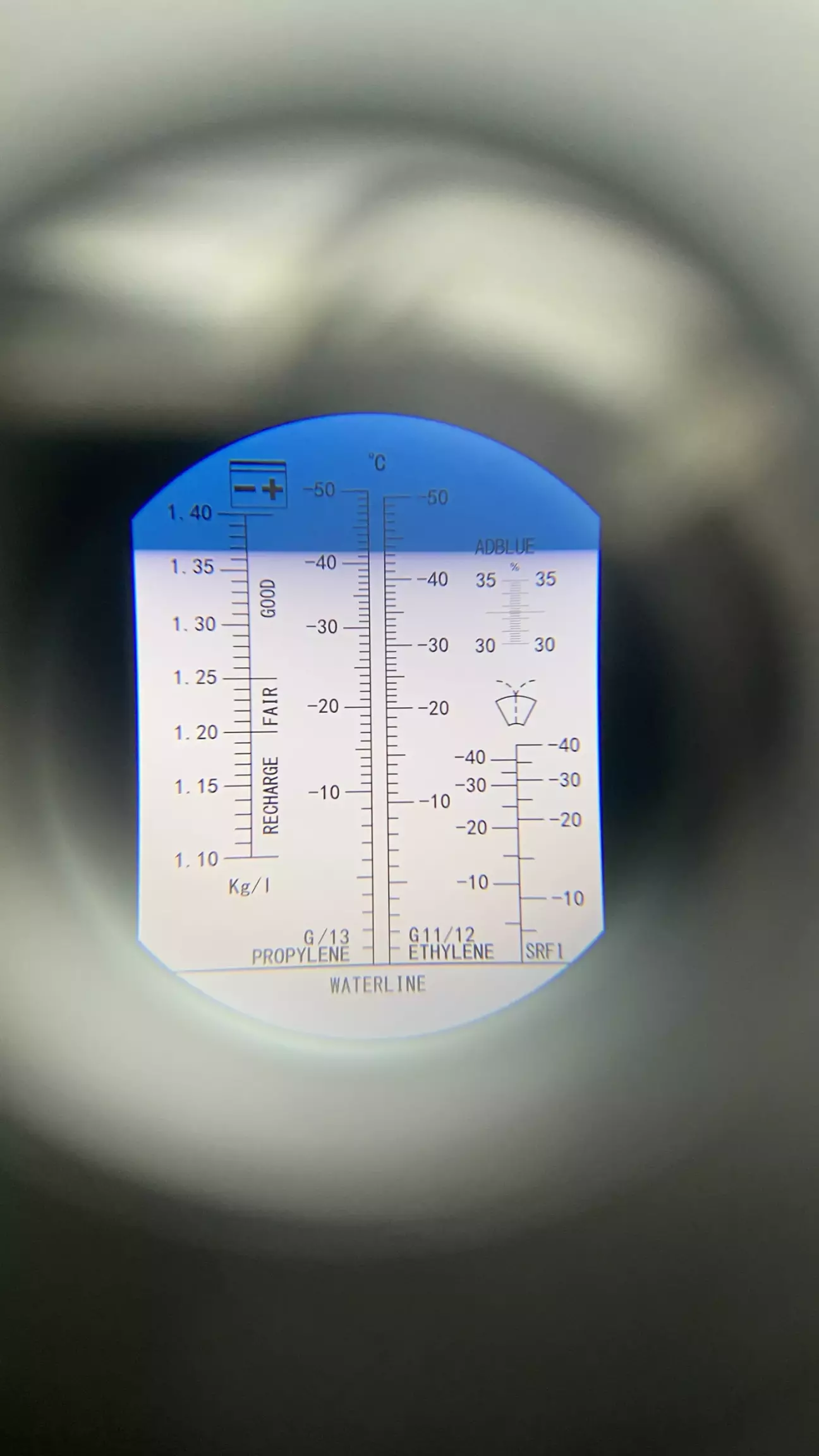 Цікава штука, береш піпеточку, набираєш з бачку антифріз, капаєш на скло і дивишся у "видошукач" :)