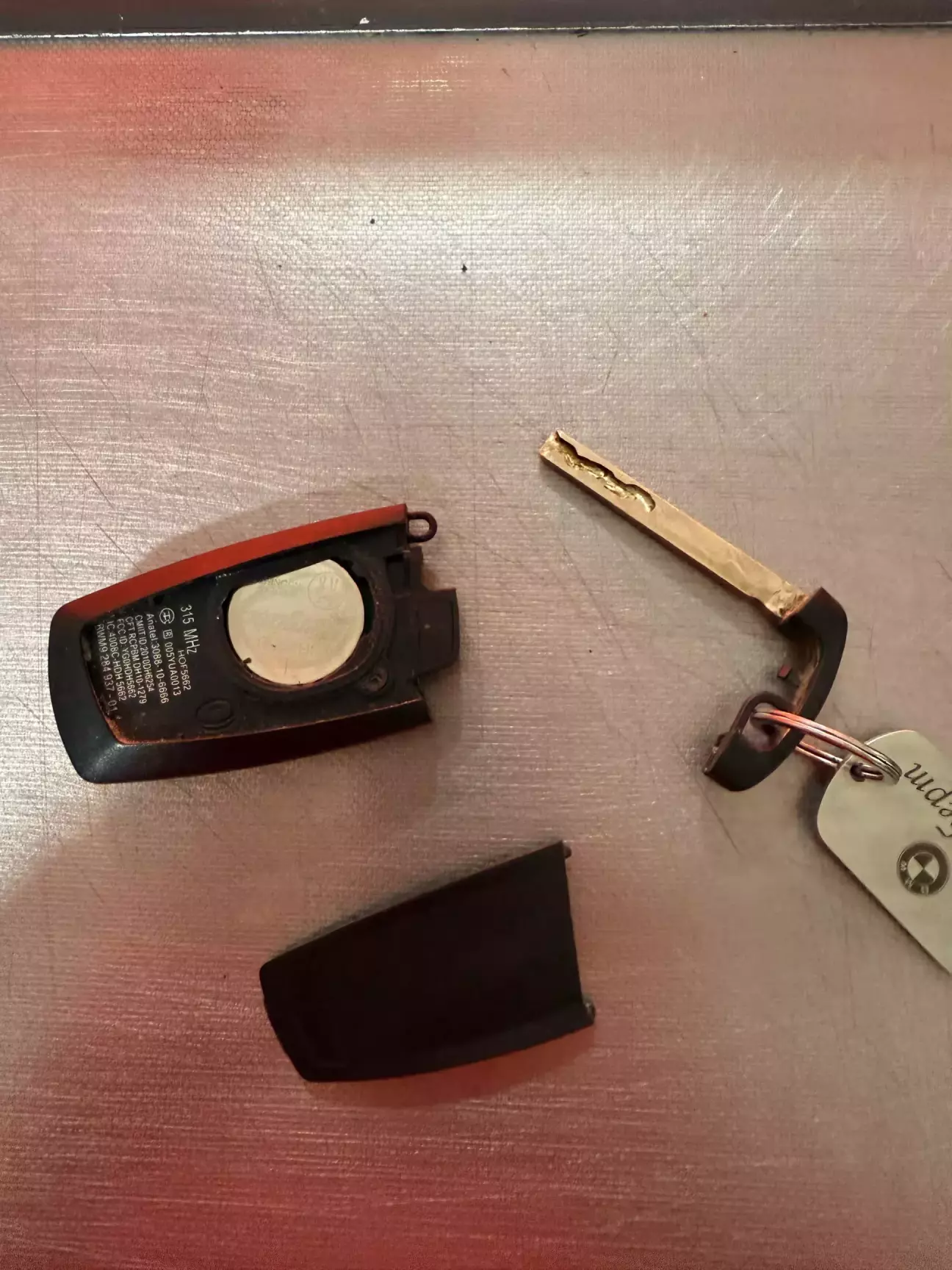 По-перше, розбираю ключ і міняю батарейку на новеньку Varta: