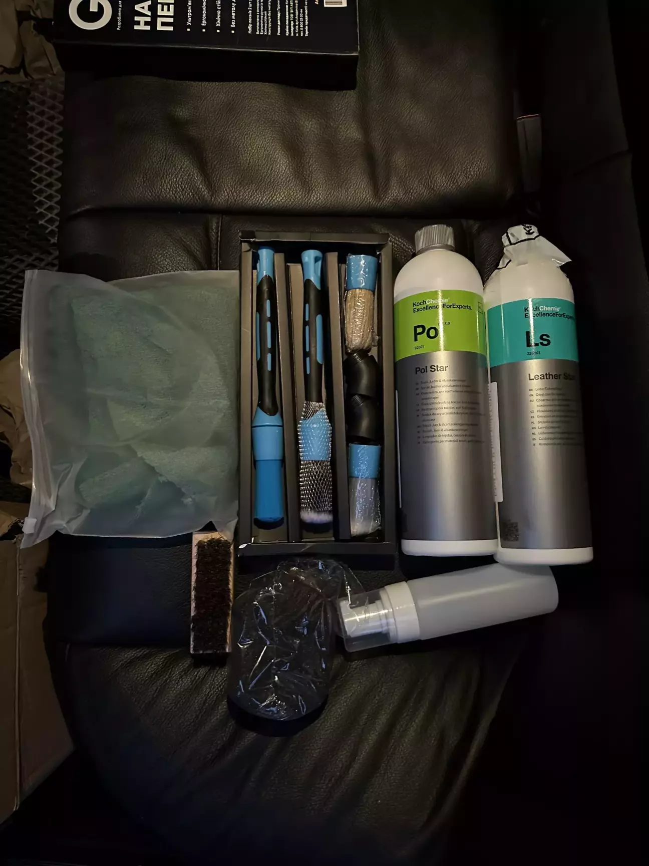 Було замовленно: очисник для шкіри і тканини, кісточки мікрофібра і аплікатор для нанесення засобу для шкіри, а і ще піноутворювач