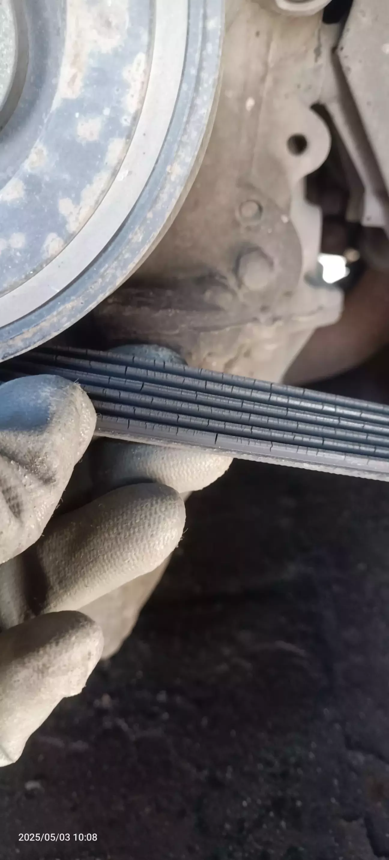 З протилежної сторони виявив добряче втомлений ремінь генератора. Потрібна заміна