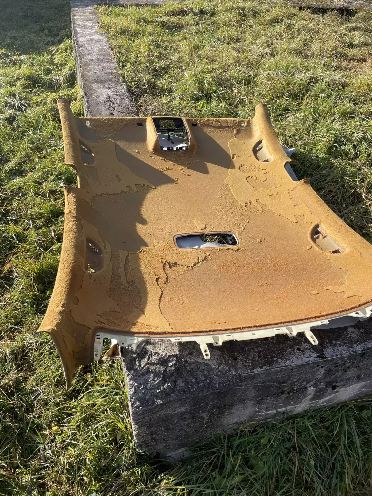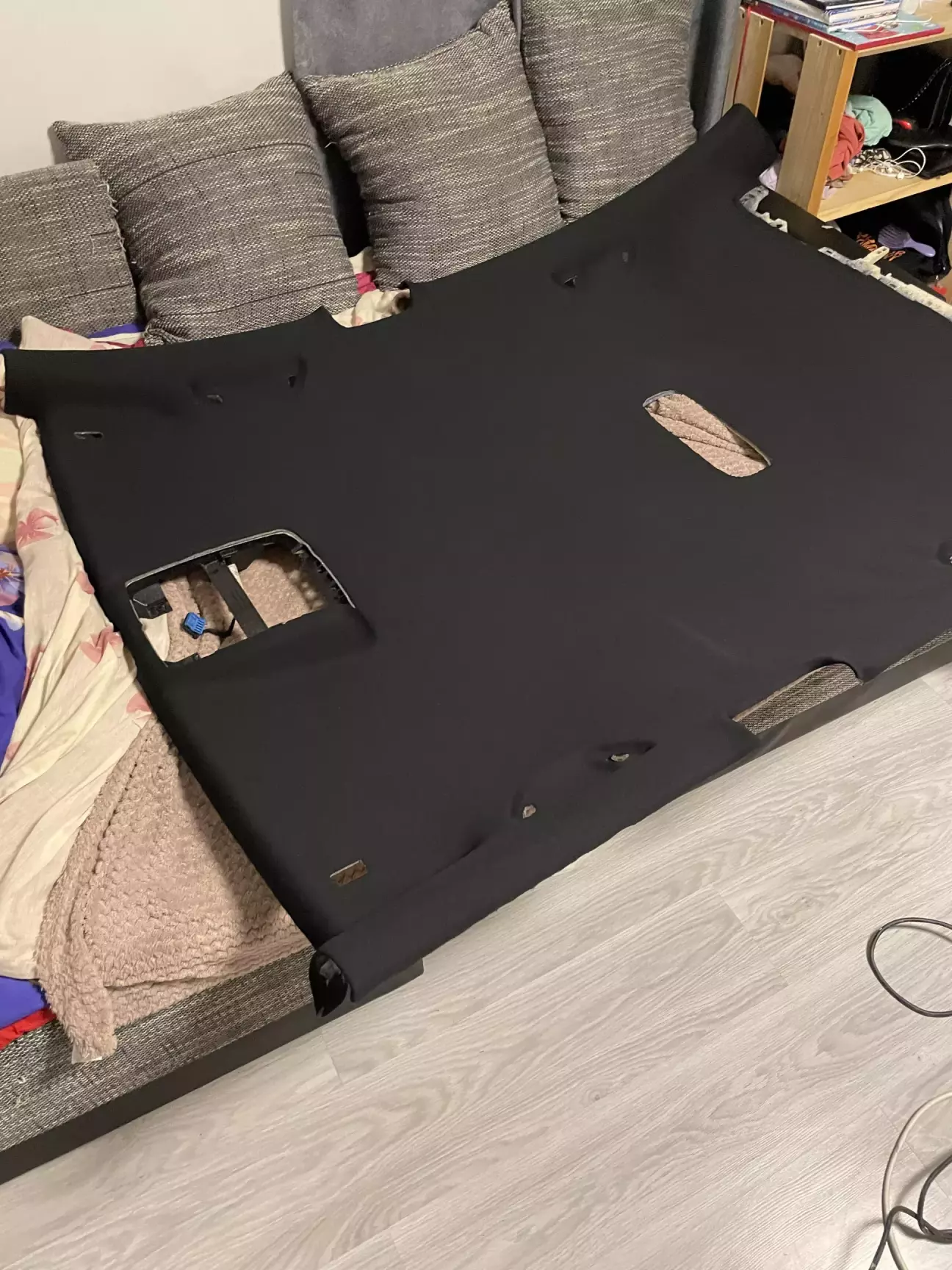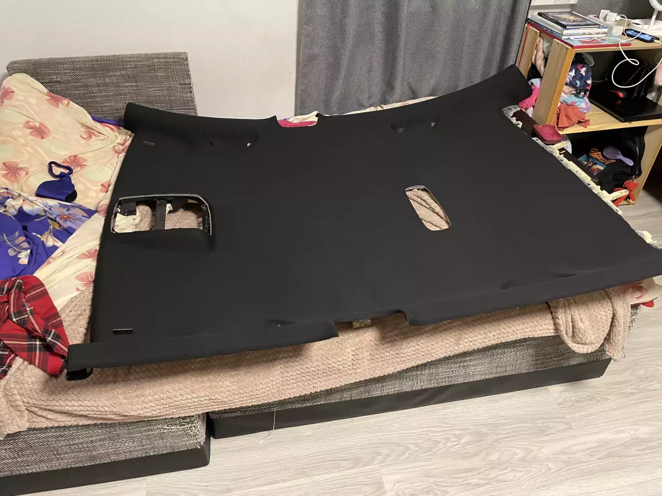 Доїздив я до того стану що стеля почала відпадати сама по собі,довго вирішував який колір клеїти,і все ж таки вибрав чорний,поговоривши з людиною яка клеїть стелі,вирішив спробувати сам,цю роботу виконував вперше,зробивши висновки після поклейки можу точно сказати,якщо ви захочете цю процедуру зробити своїми руками, запамʼятайте одну річ,беріть тільки поліуретановий клей під пістолет бажано чорний,дюза в пістолеті має бути 2,5