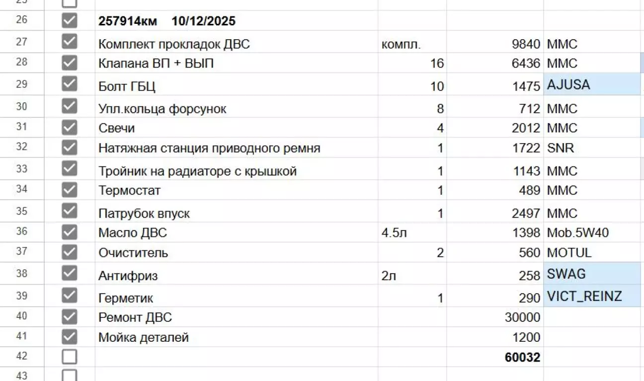 Бомж пакет не вийшло зробити. По роботам фулл пакет із заміною клапанів.