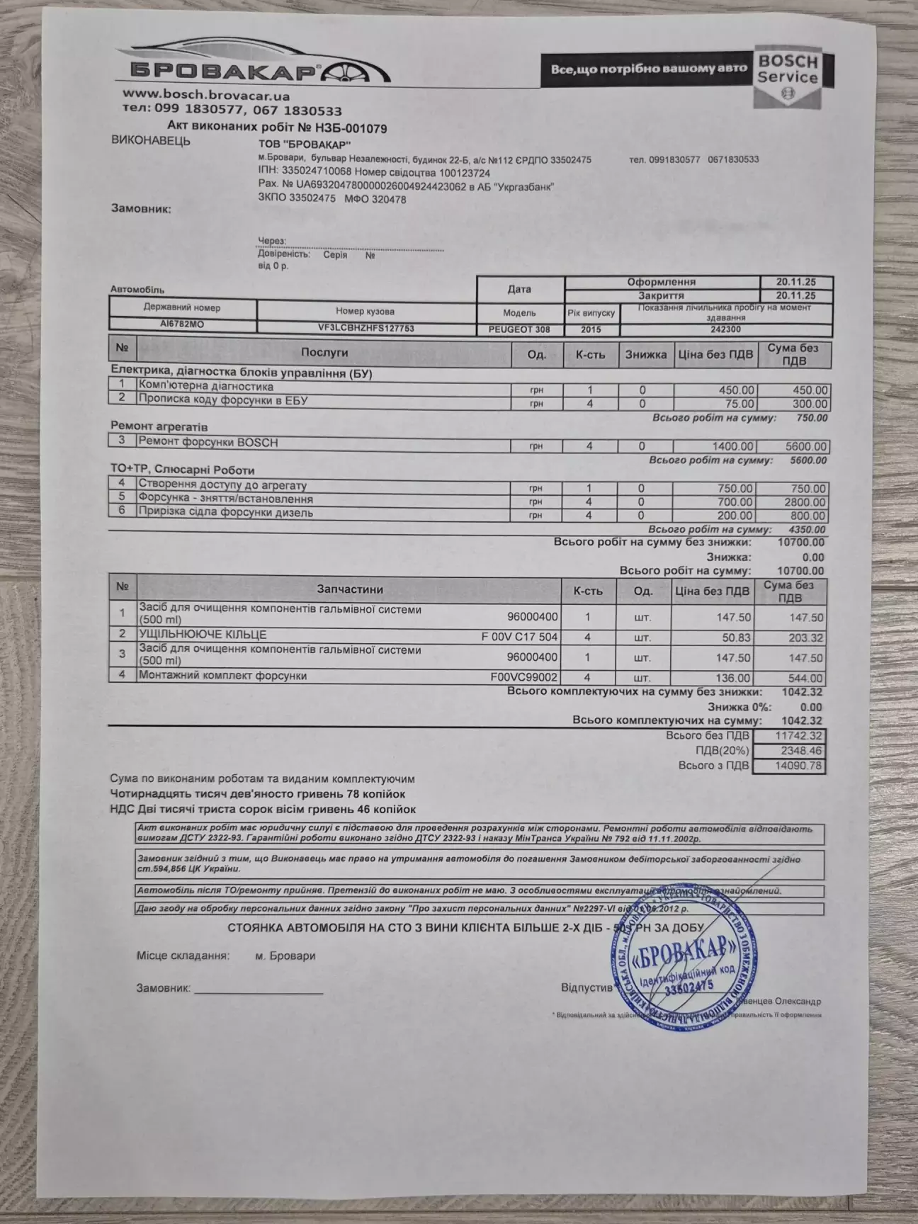 Діагностика показала, що форсунки не доливають трохи. Сказали, що міняти запчастини не потрібно, можна обійтися чисткою ультразвуком та регулюванням.