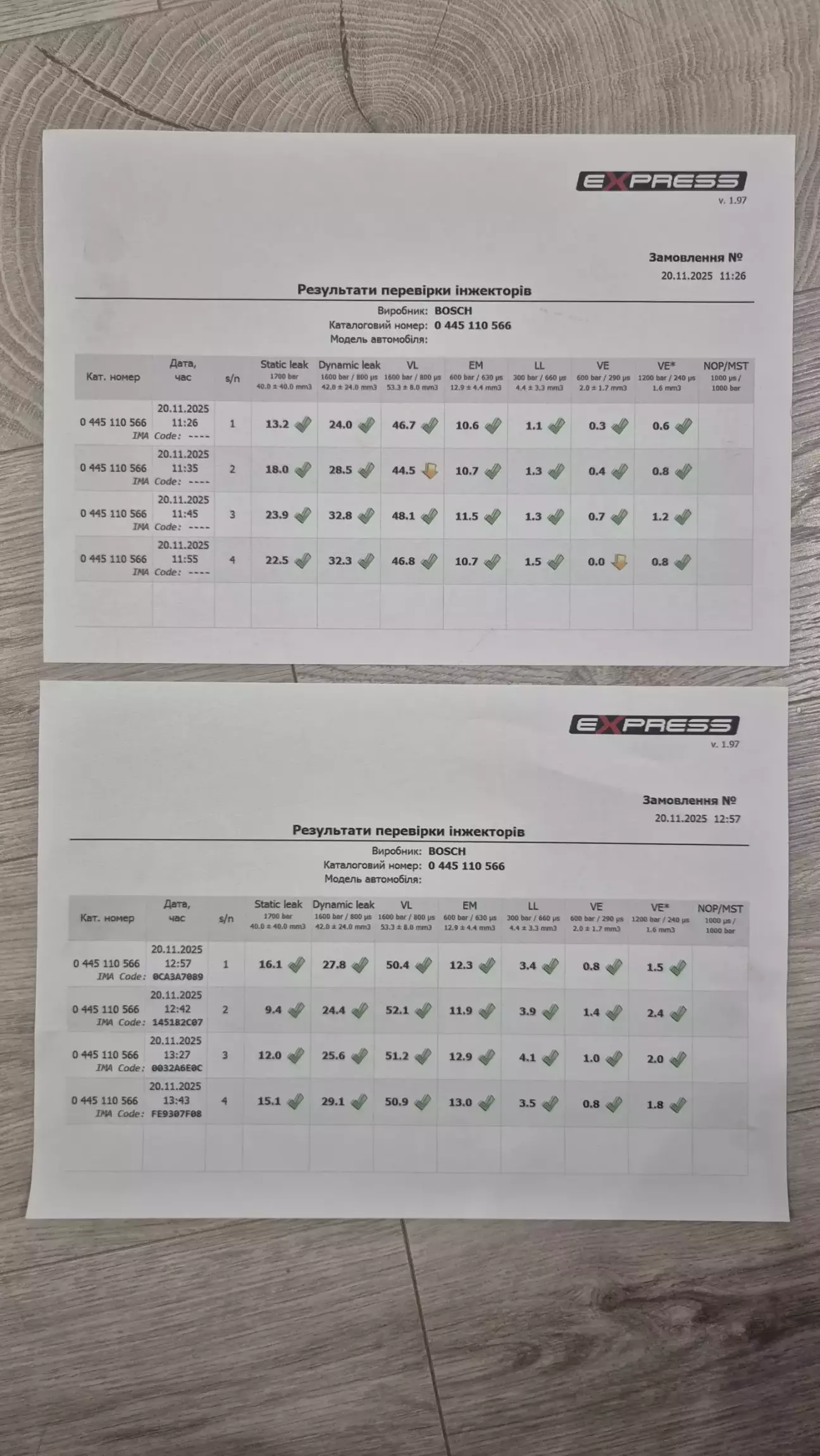 Після регулювання дали нову роздруківку з параметрами і з кодами для прописування