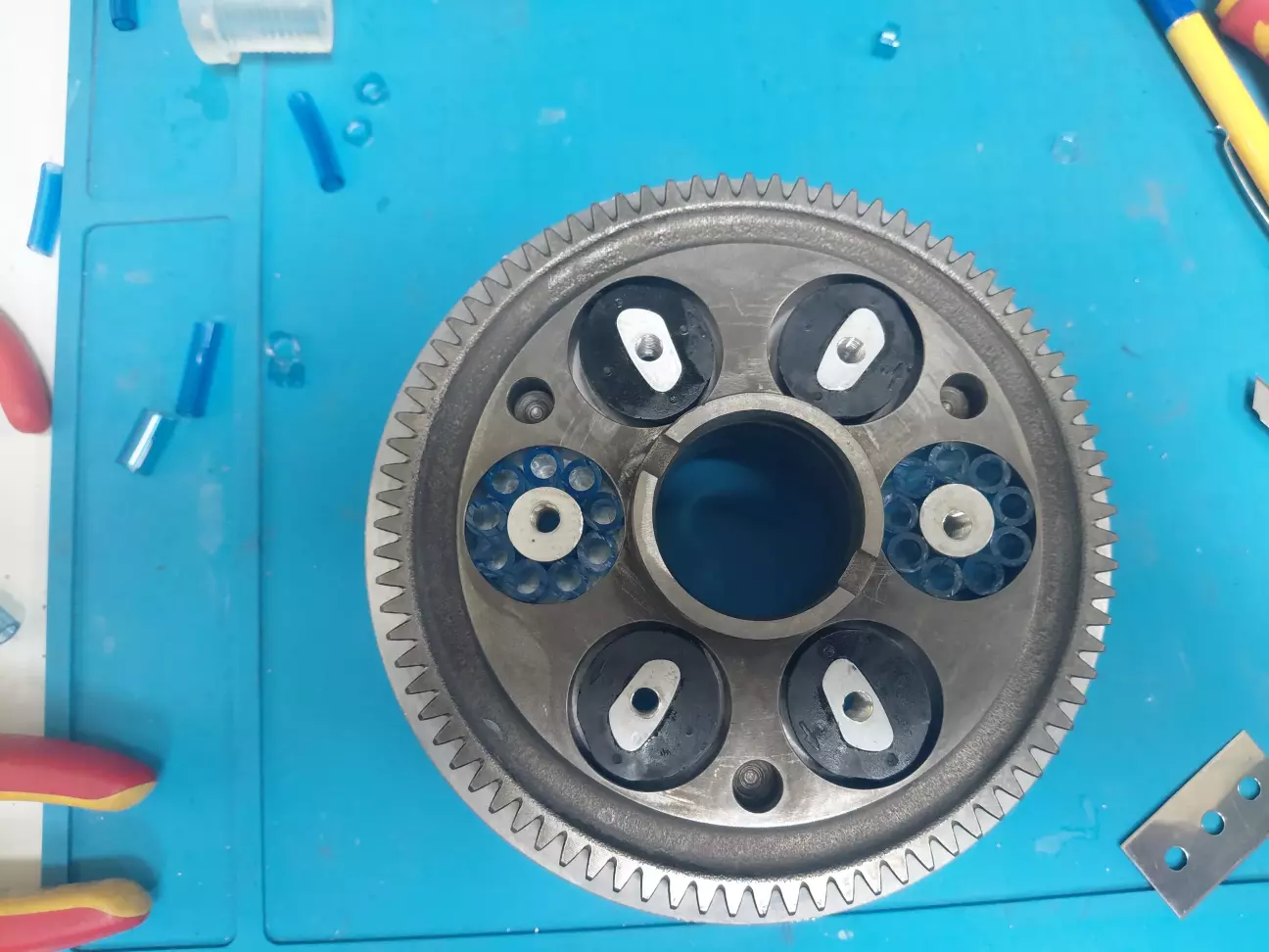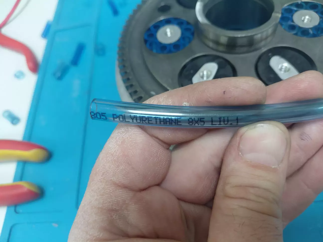 Хто що туди ставить одні втулку від рідіатора маза чи то камаза але вона не масло стійка, хто втулки поліуретанові з москвіча, також думав купив їх а вони мають зовнішній діаметр менший ніж отвір на шестерні. І тут попалася трубка пневматична поліуретанова товстостінна.