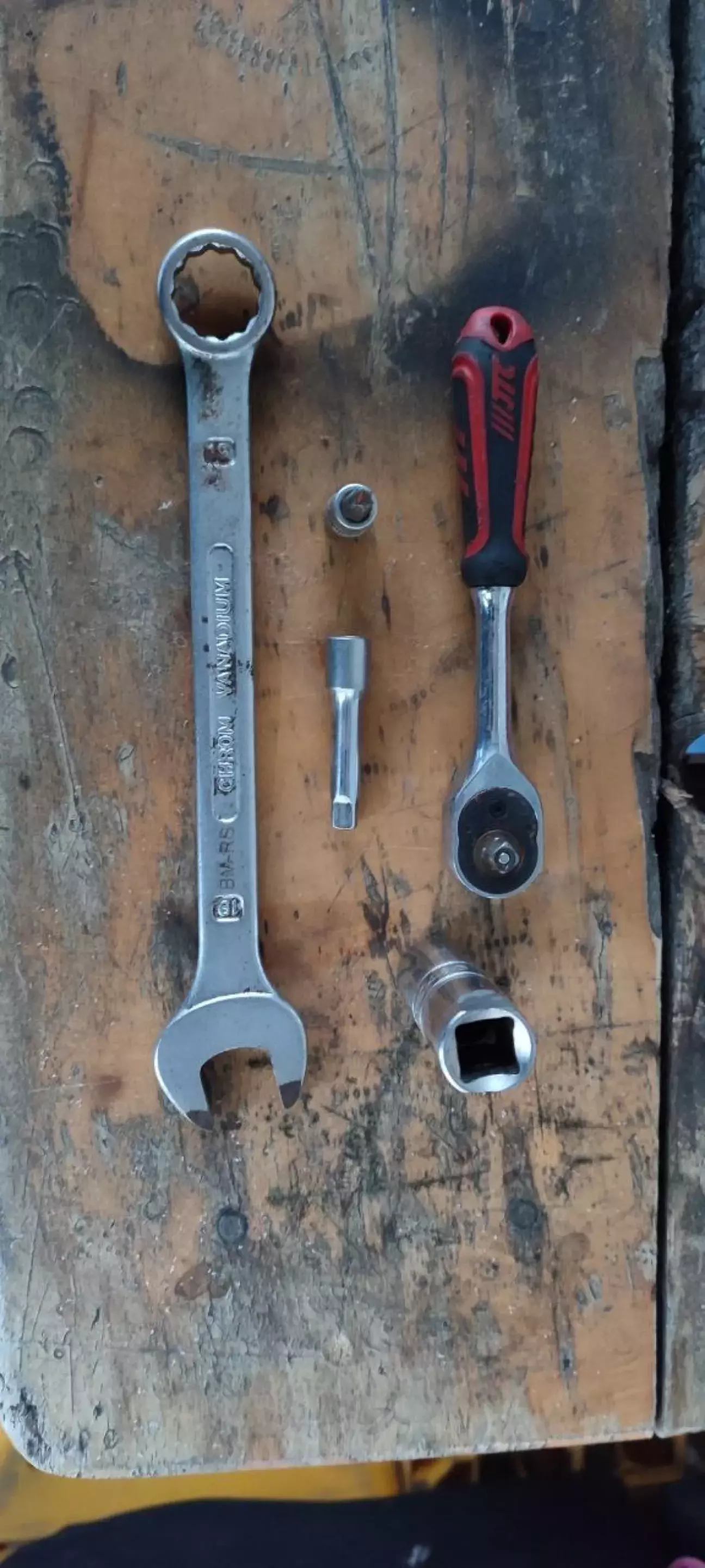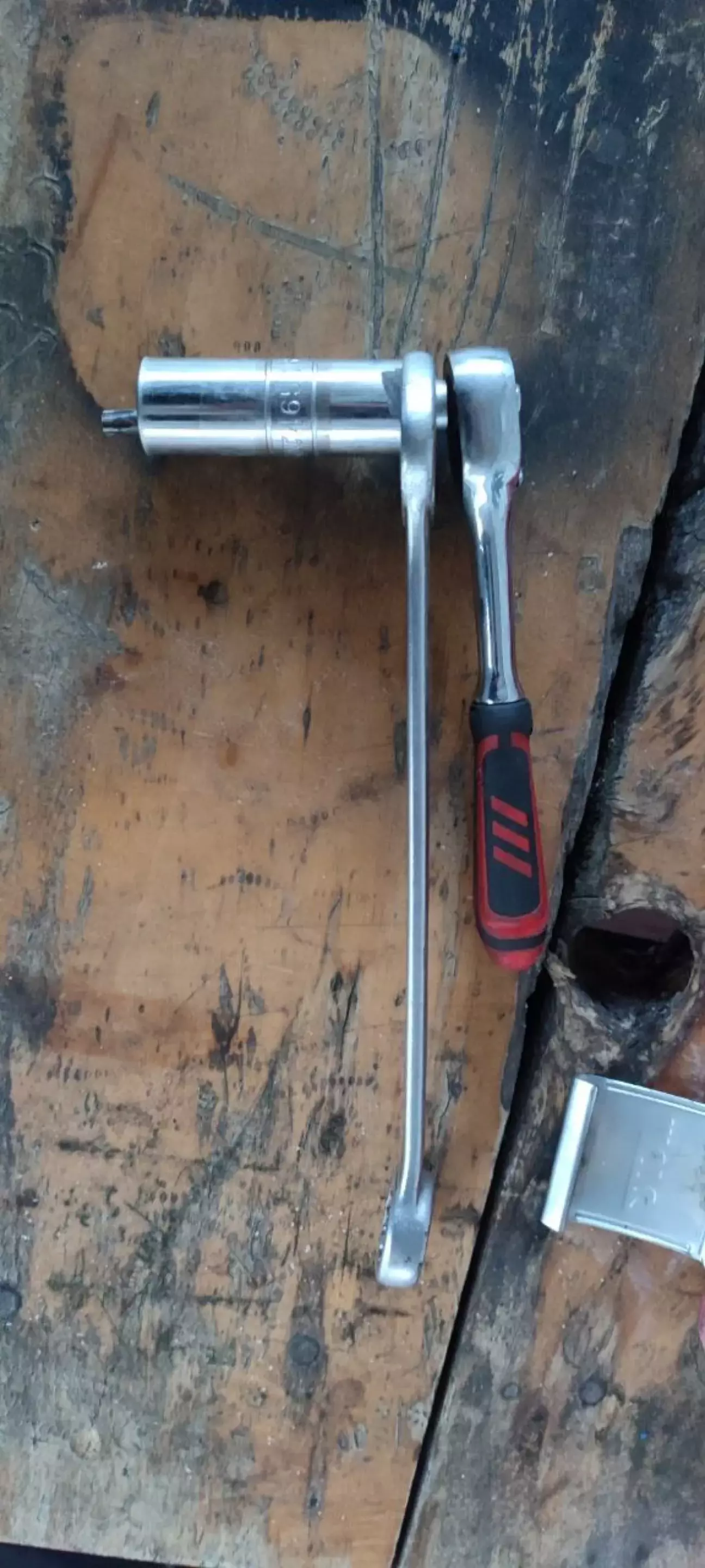 (свічний ключ на 16, заточений по боках під ріжковий ключ на 19, в середину якого встановлена трещітка з торексом)