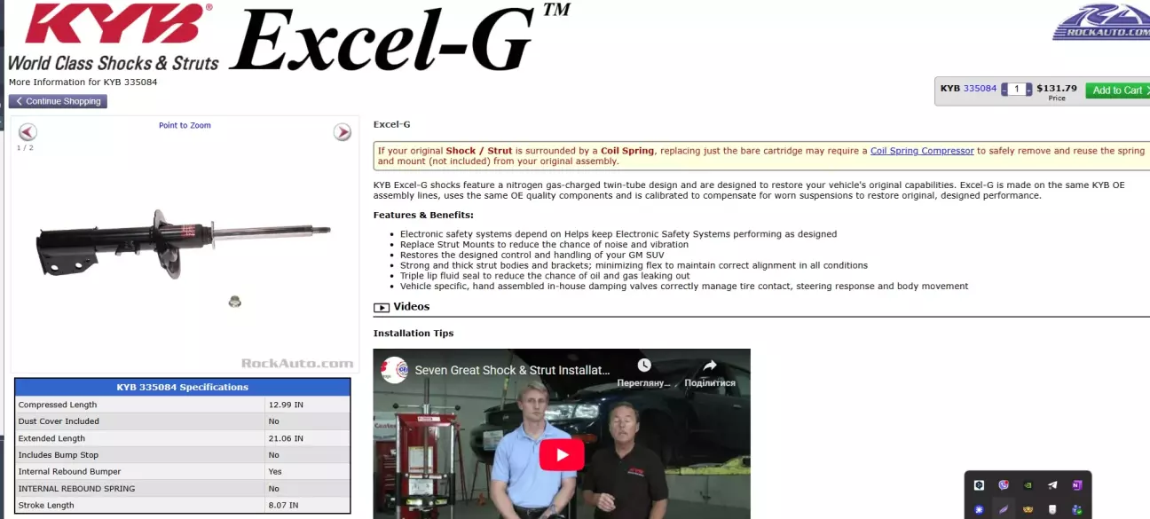 Бажаю міцного. Хотів замінити сальники приводів і коленвалу, були невеликі запотівання, віддав на СТО біля дому. Замили місця, вивісили на пару днів і нічого нового не з'явилося. Відклав на наступний рік. Замінили амортизатори, були придбані заздалегідь KYB 335084, 335085 з Америки. Купував по 1 шт. щоб не платити налог. Ущільнуючі резинки під пружину купив також в Америці. Опорні підшипники і резинки над пружиною купив тут.