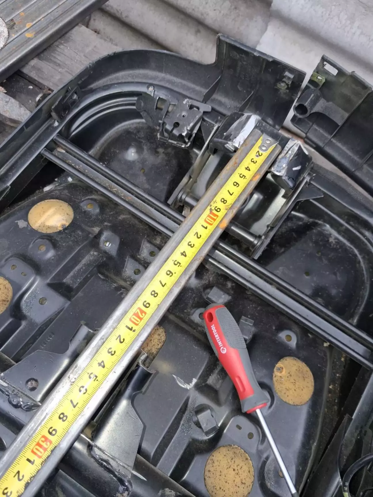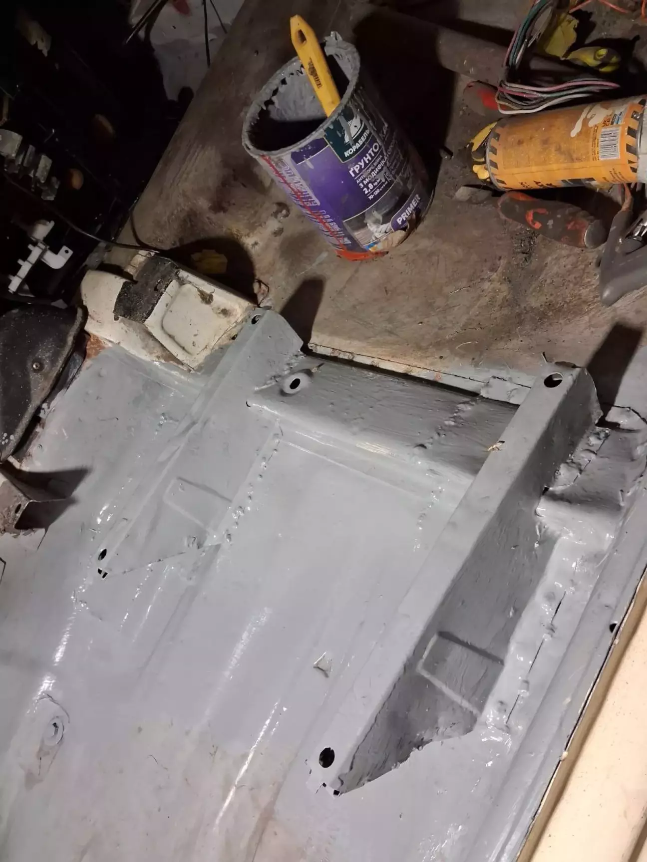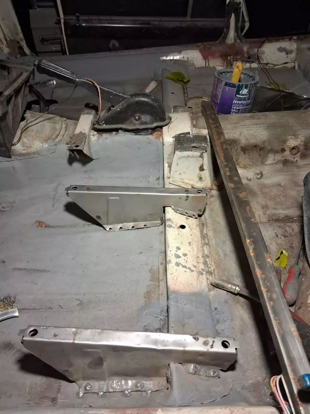 Аналогічну роботу проробив і з другим сидінням. Після чого зняв всю заводську віброізоляцію, бо вона потріскала і під нею була іржа. Все зачистив і загрунтував. Додатково місця зварювання пройшов бітумною мастікою в балончику і знизу днище після зварювання місцево теж пройшов.