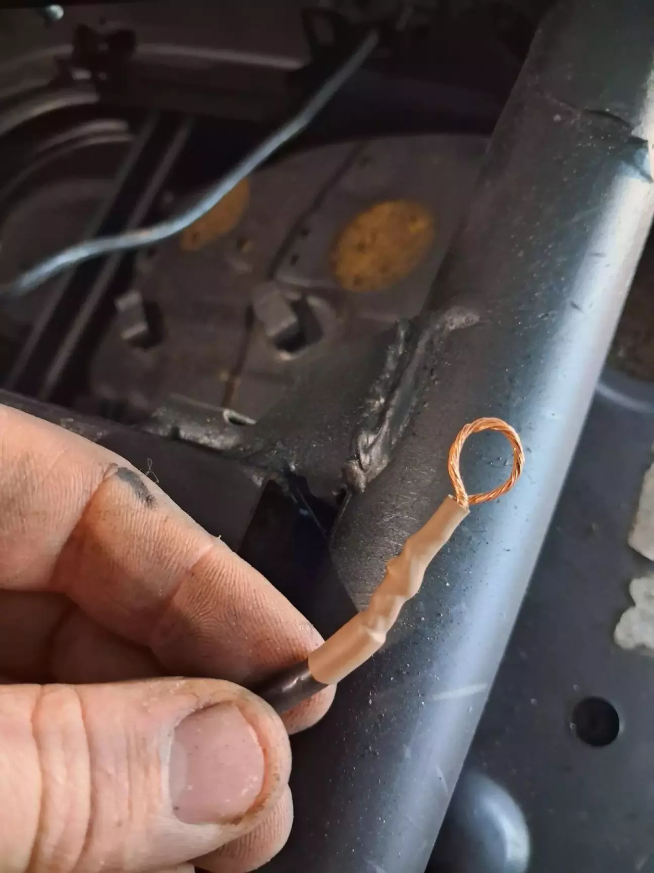 Єдиний нюанс - подушки безпеки. Вони є в сидіннях. Вирізати я їх не став. Тому обрізав кабель, з'єднав в одну петлю і "повішав" на кузов, щоб не спрацювали від статики.