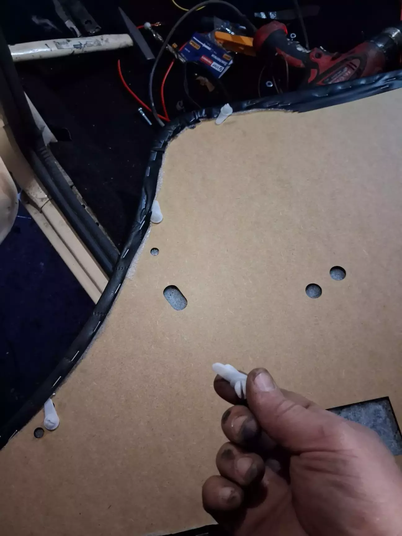 Також обклеїв задню полку і стелю. Стеля - то окрема тема, там ржавчина, тонна пилюки і шумка із мінвати. Вся посипалася. Все розсохлося. Тому зняв стелю, все очистив, поклеїв шумку на стелю, купив і натягнув нову стелю і встановив ремкомплект кріплення стелі.