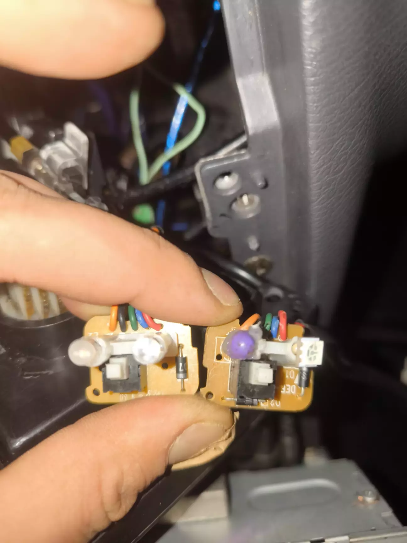 Еще мне Игорь пересветил кнопку обогрева заднего стекла,но что-то пошло не так и я решил на свою старую перепаять светодиоды))))