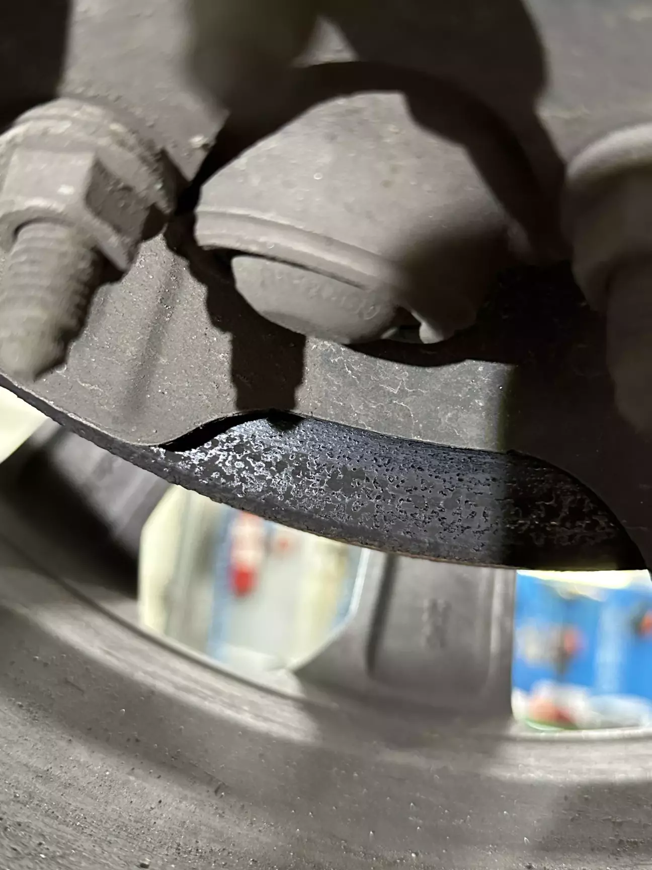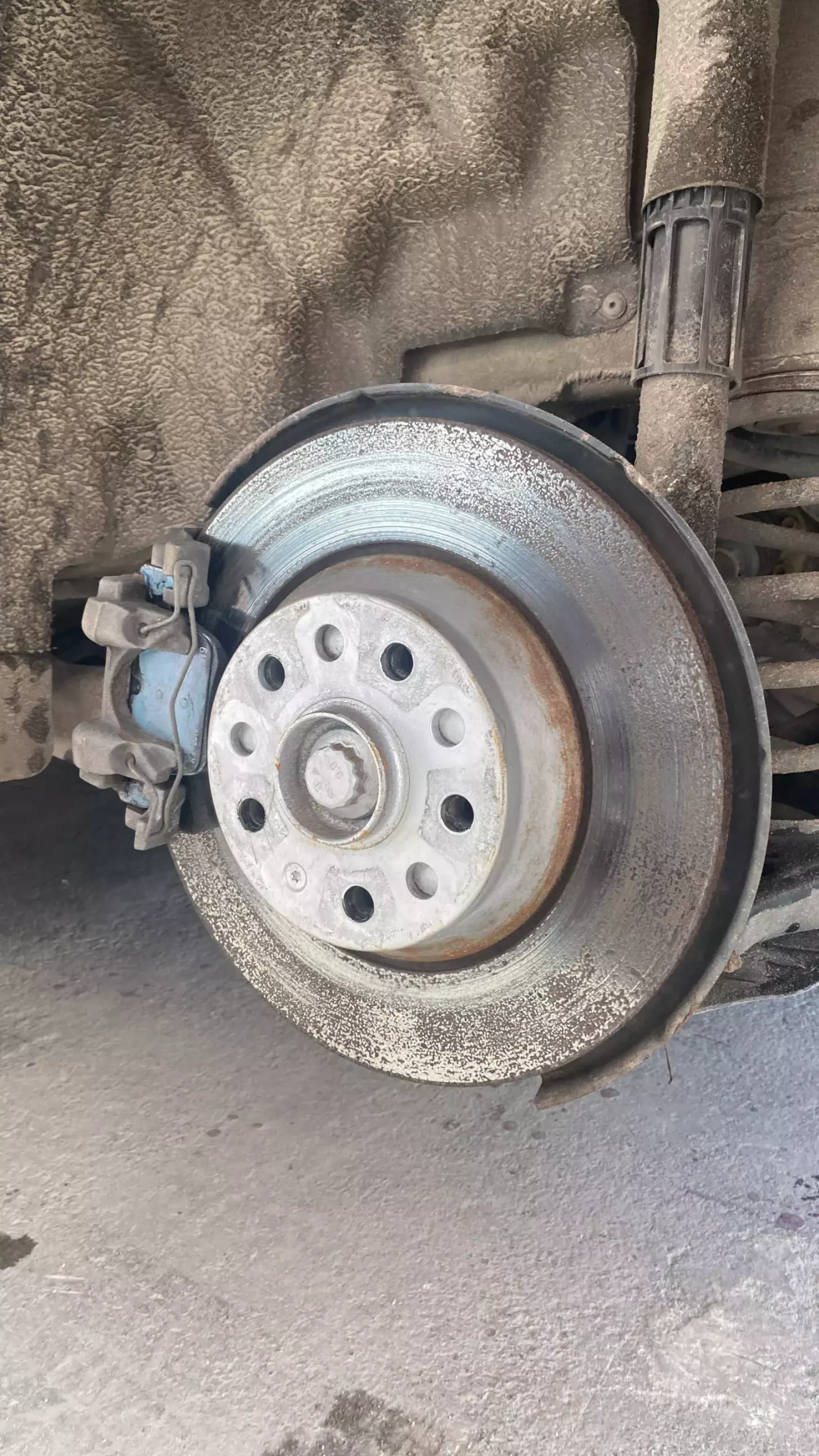 Після того як хлопці з VAG Master зробили ТО по заміні олив у двигуні, антифрізу та гальмах, додатково ще подивились ходову та гальмівни диски, бо були в мене скарги на біття руля і "смикання" при гальмування. На жаль авто довго стояло, волога та іржа зробили свою справу, і маємо ми ось таку картинку, як на внутрішніх, так і на зовнішніх сторонах всіх 4х гальмівних дисків.