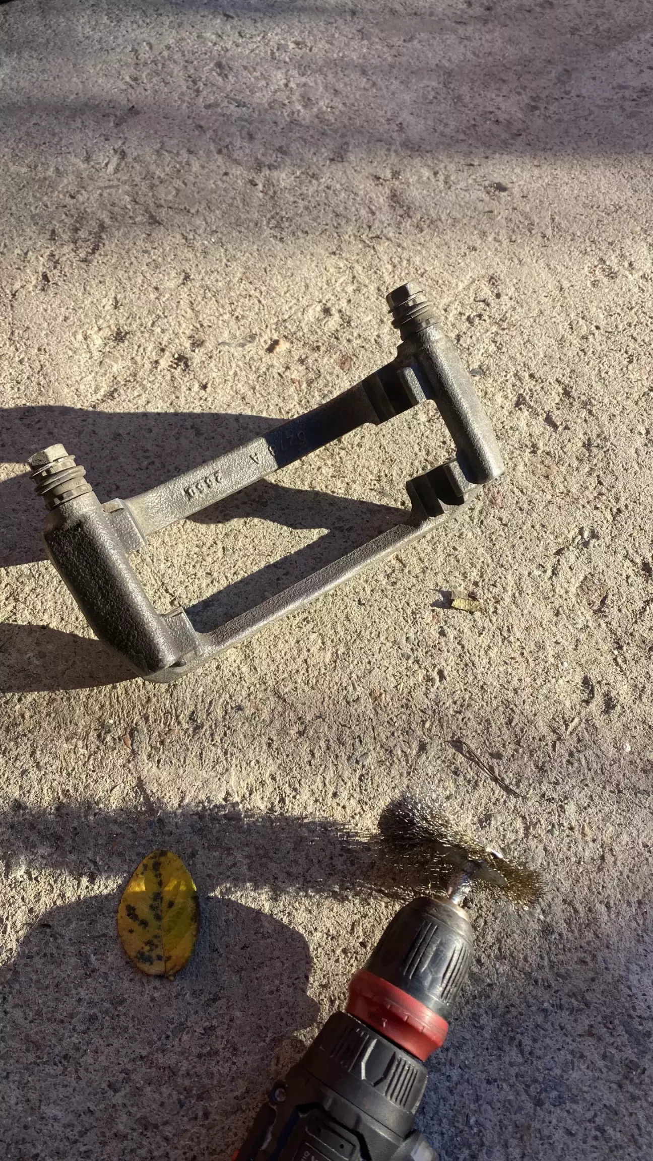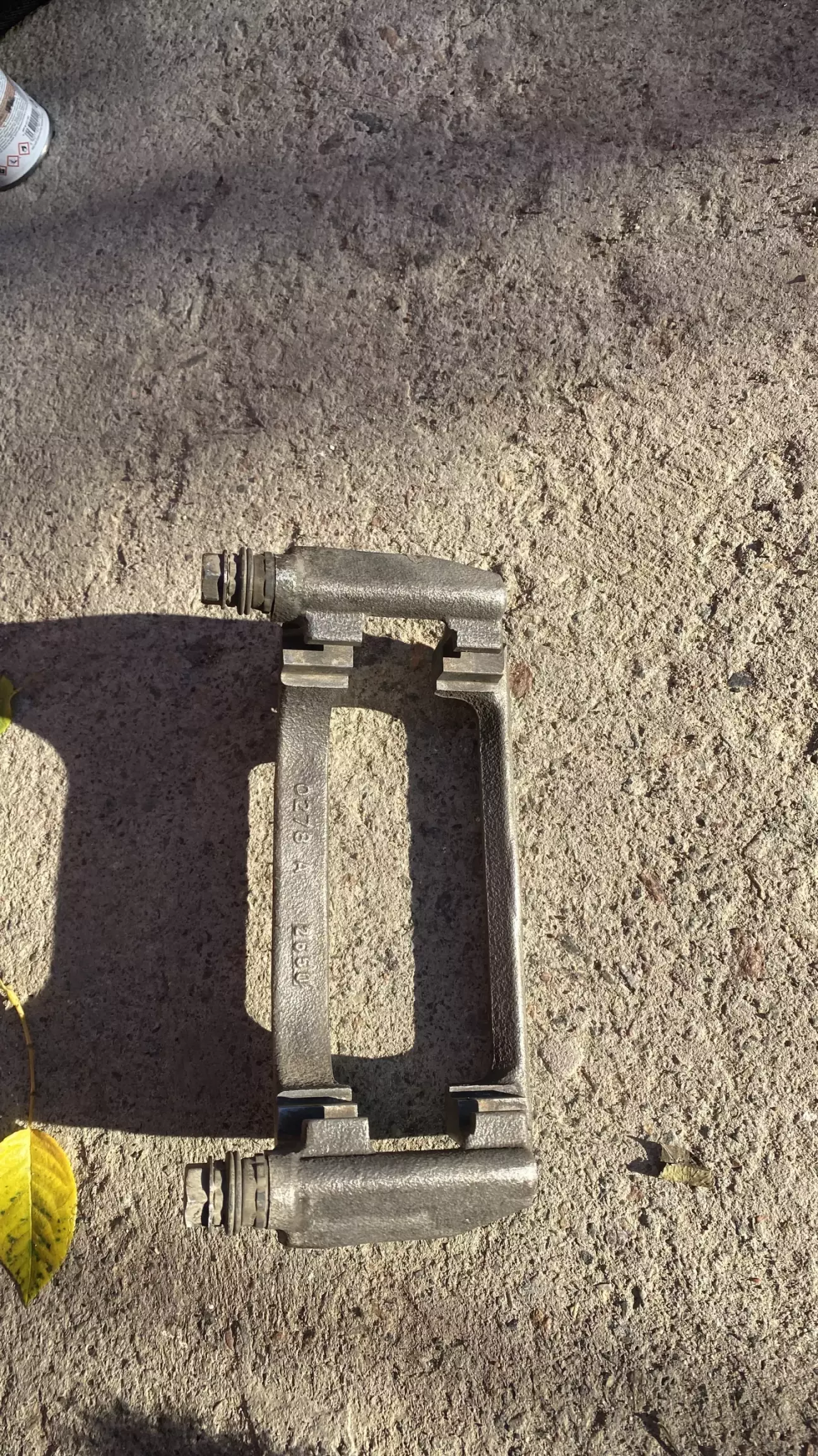 Далі знімаємо скобу тримача самого супорта, бо, на відміну від задніх дістати без цього їх не вийде. Торцева головка на 21 + WD40 та неабияке зусилля шоб зірвати, але то не гальмівний диск вистукувать). Так робимо з двома болтами, низ та верх.