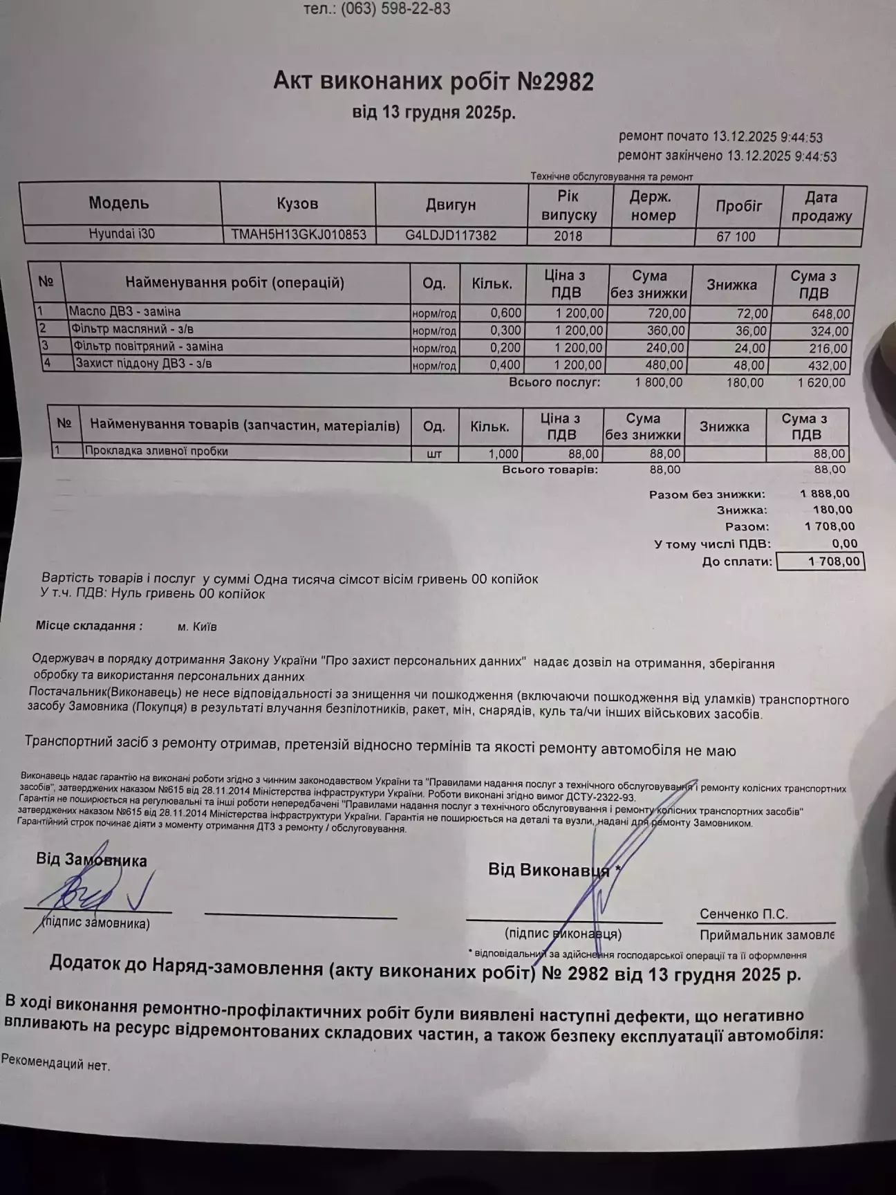 Заміна моторного мастила на пробігу 67100 тис. км, був вільний час, розхідники були куплені одразу після попереднього ТО.