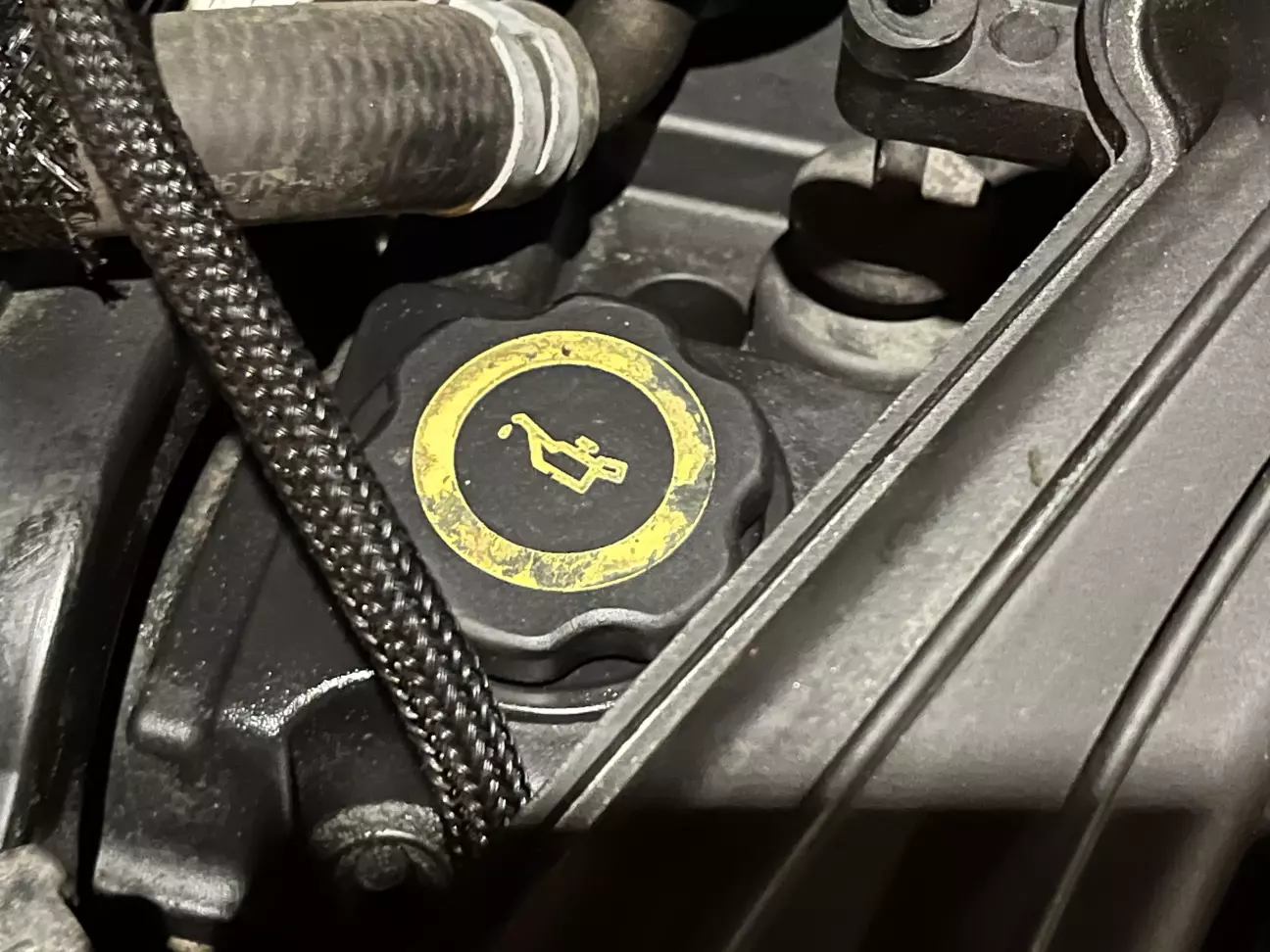 Ну тобто як «ходь сюди»? Заливної кришки нема! Є якась заглушка, а кришки нема. В пошуках нової кришки перша відповідь на запит в інтернеті була: «бляха, знову ця кришка зламалася!». Зрозуміло. Йдемо на задній двір, де є пара корчів для канібалізму. Кришка від якогось Опеля не підійшла за різьбою, але її верхня частина підійшла до того, що залишилося в моїй клапанній кришці. Тож викрутив пласкогубцями, а закрутив вже, як цивілізована людина. Не ідеально, але походить.