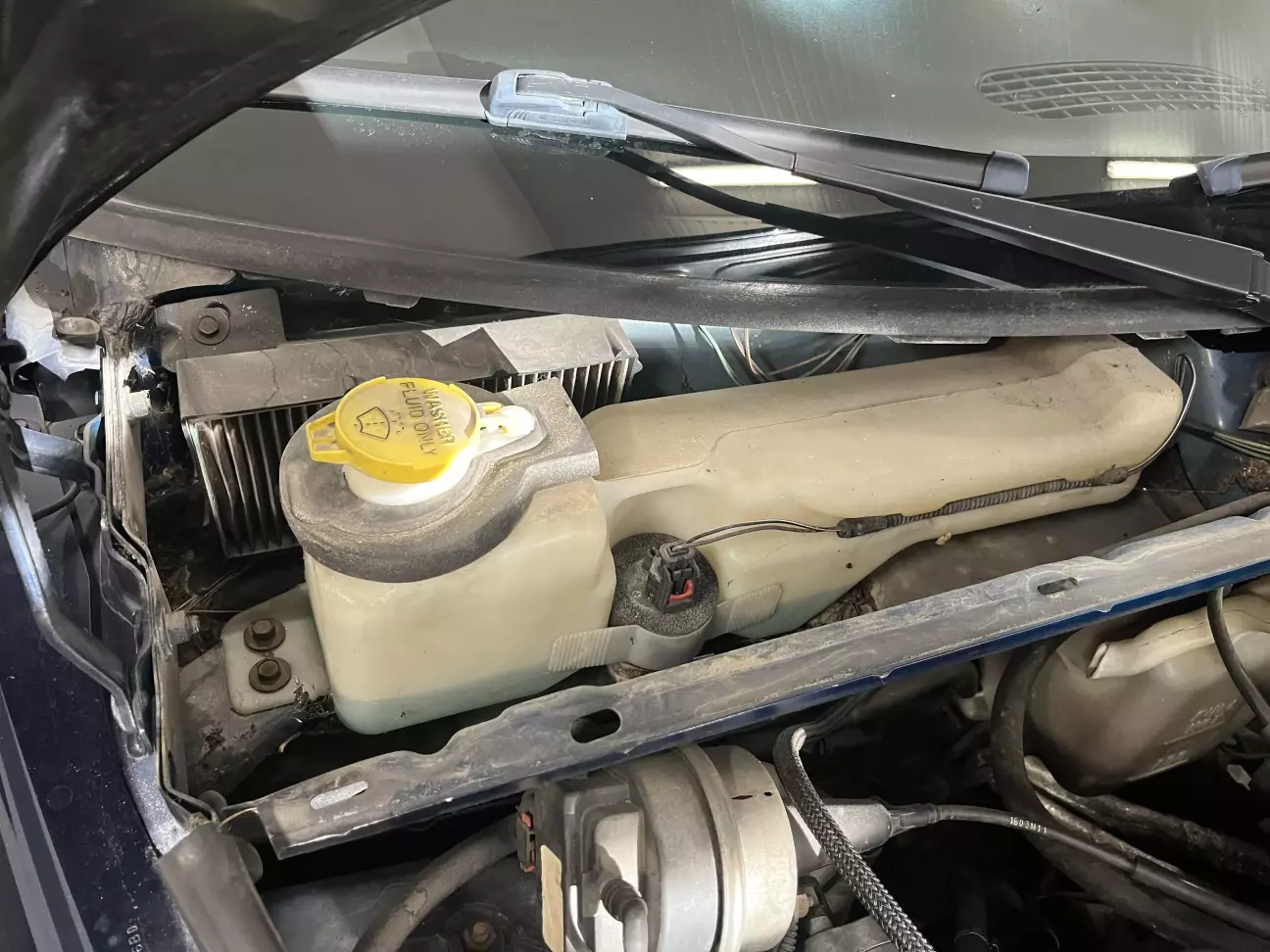 Звісно лише після того, як я зняв панель склоочисників і бачок рідини омивача.