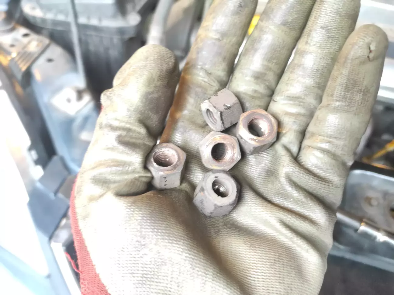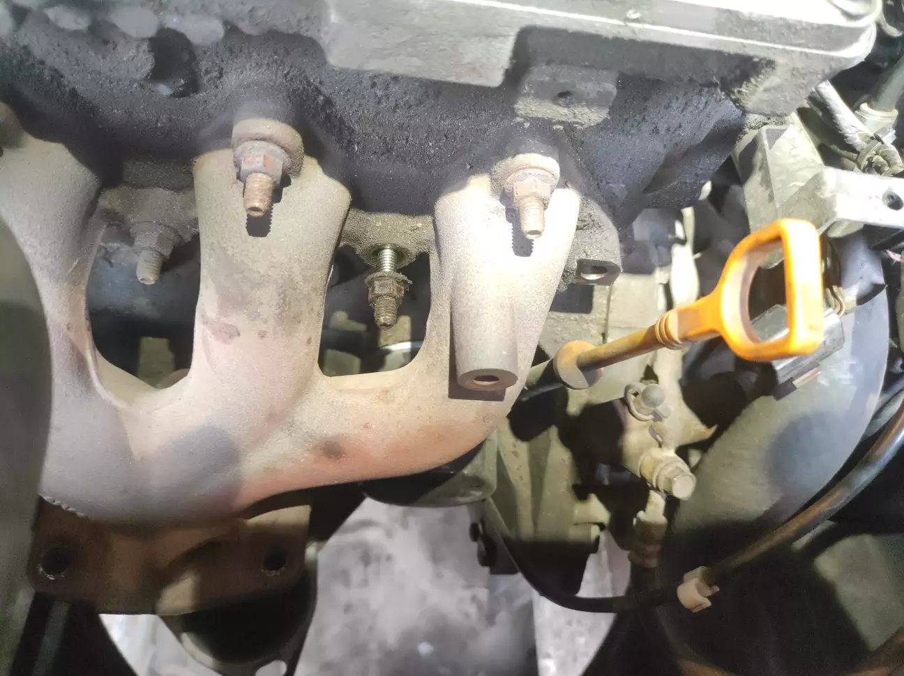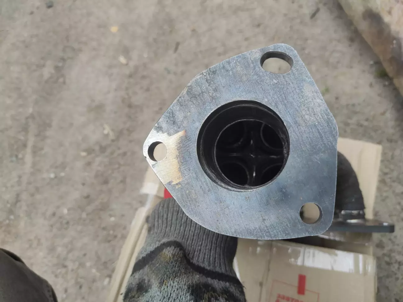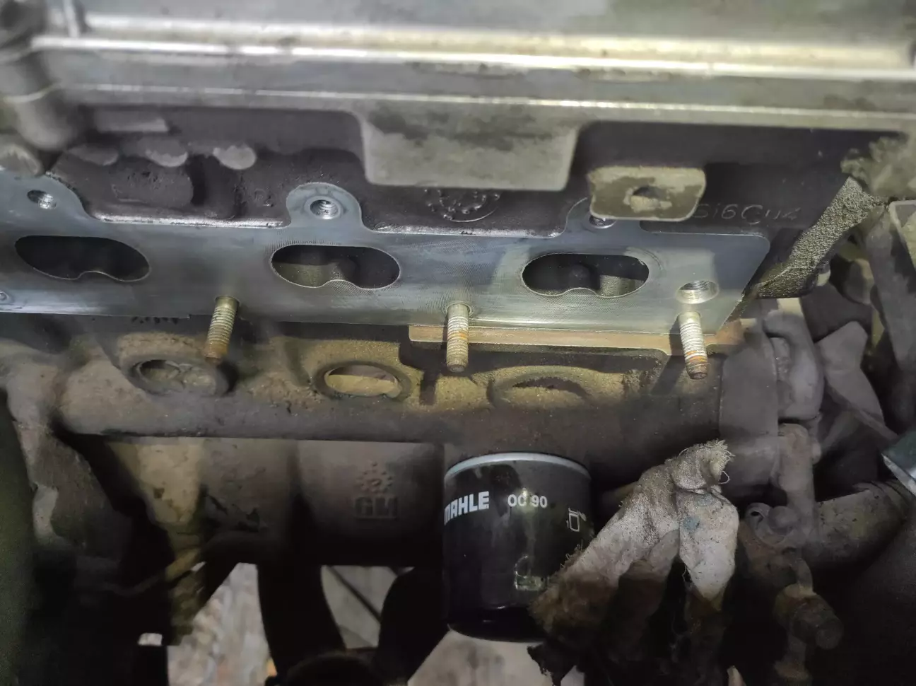 Всі шпильки викрутилися разом з гайками, що тільки спростило задачу, адже товщина плити нового колектора значно менша за товстелезну плиту рідного: