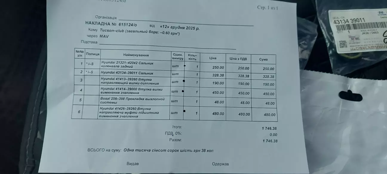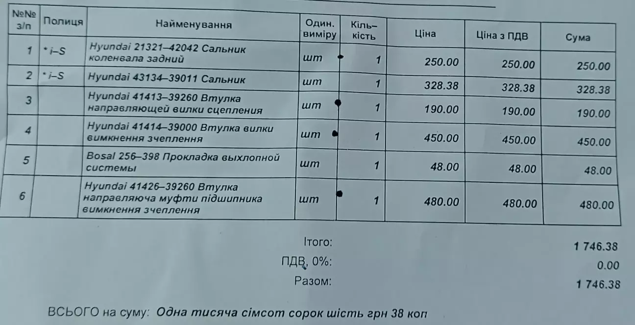 16660(Сеул авто Запчасти+Работа)+5200 (Комплект сцепления+выжимной)+1747(мелкие запчасти)=23607