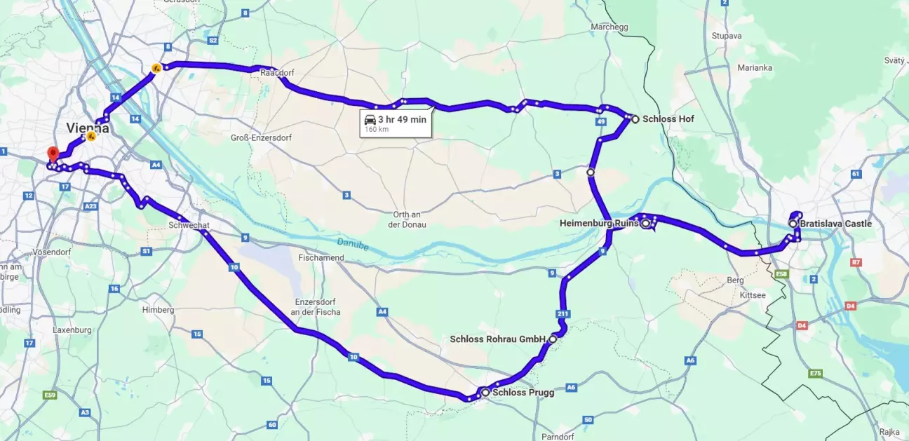 Хайнбург, точніше його руїни, не були планом нашої подорожі в той, а просто лежали по маршруту на Братиславу, тому вирішили і його подивитися. Він існував ще з сер. 11го ст. і контролював судноплавство на Дунаї поблизу кордону з Угорським королівством. Після 1742 року, через будівництво нового замку біля підніжжя замкового пагорба, замок, який втратив свою цінність як оборонна споруда, занепав.