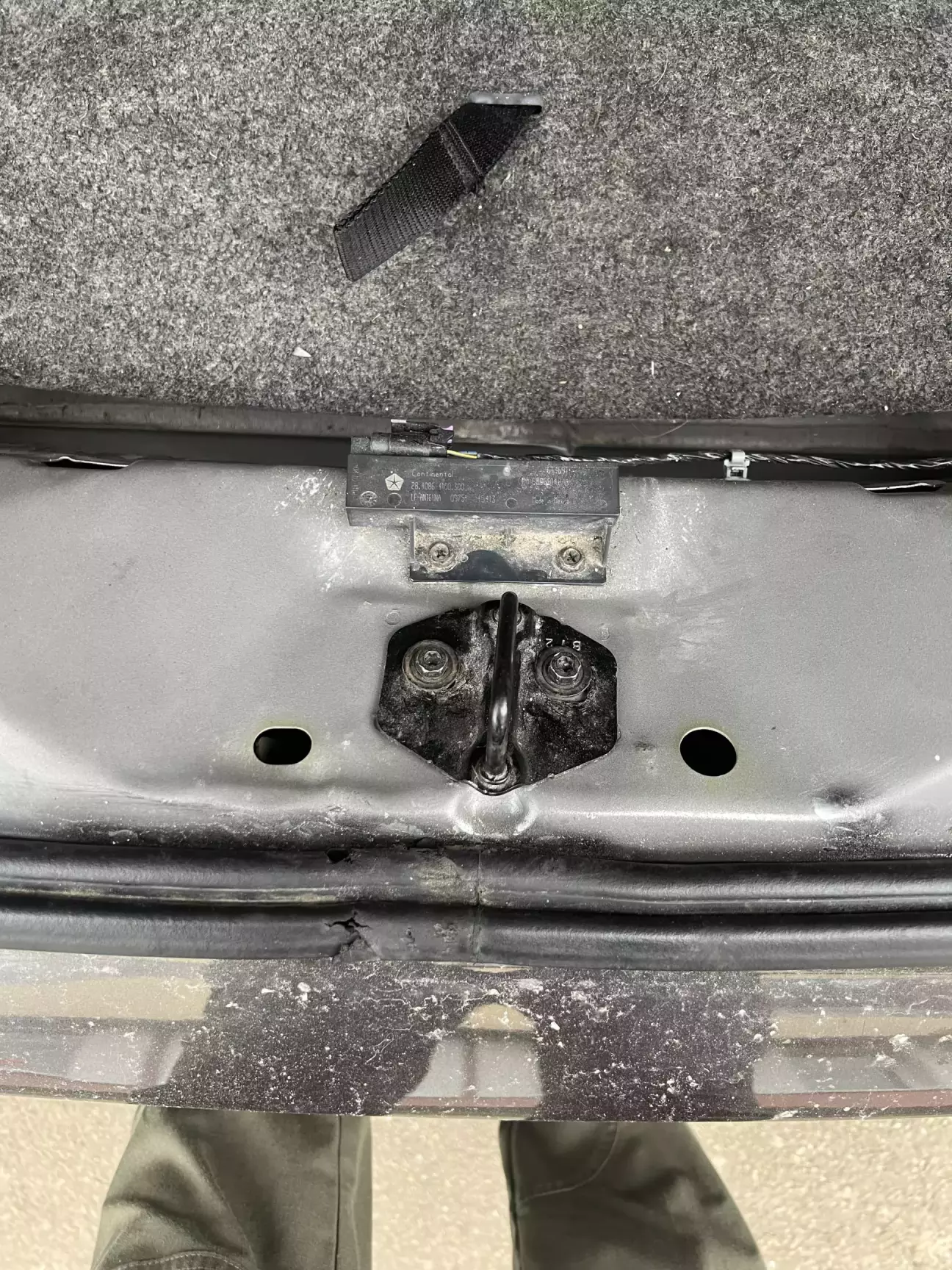 Поки виставляв петлю закриваючи і відкриваючи багажник в якийсь момент підчас однієї із спроб його закрити він чомусь різко перестав закриватись. Я його "гуп" а він відкривається, я його сильніше - не допомогло. Стою нічого не розумію, типу в сенсі ти перестав закриватись? Потім щось дивлюсь в багажник і бачу там ключ (єдиний) і тут я дізнавсь, що з ключем в багажнику це авто не закриється.