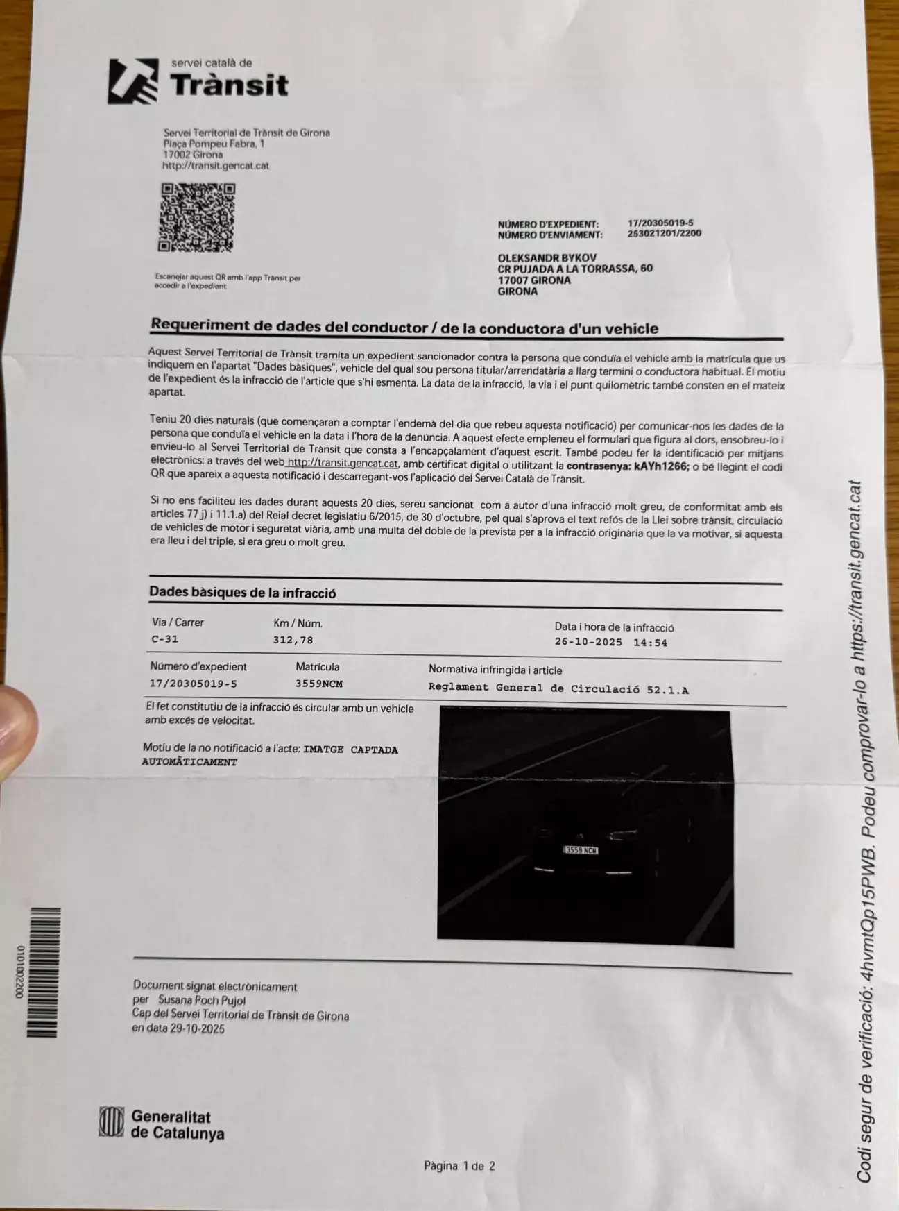 Короче, тут суть цієї бумажки, що типу у вас є 20 днів, на те щоб сказати нам хто був за кермом даного автомобіля, бо цей автомобіль скоїв порушення і їхав по трасі швидше дозволеної швидкості. Машина то оформлена на мене, але я не зареєстрований в системі дорожнього контролю, тому вони не знають щось там про мене і вирішили уточнити.