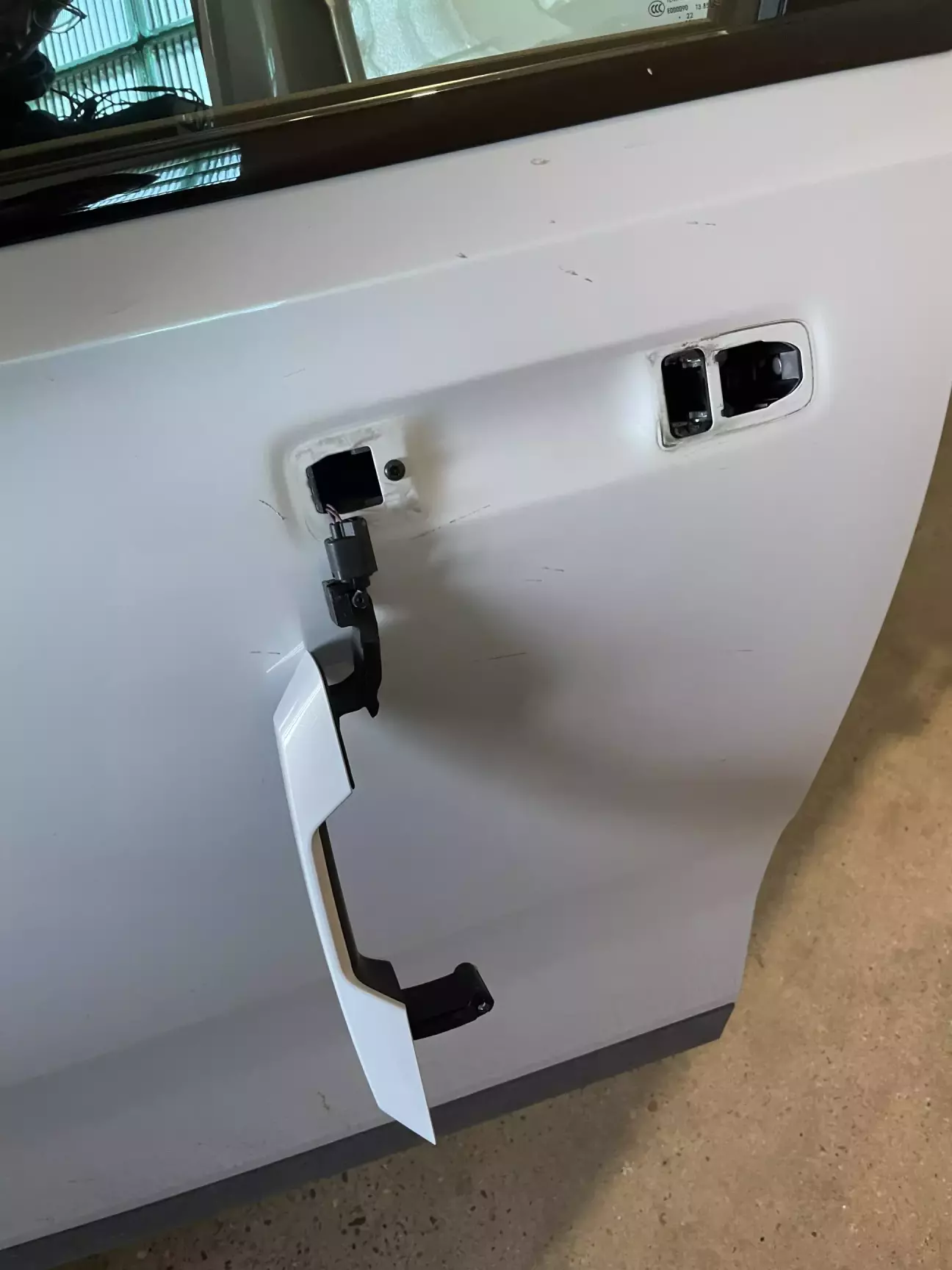 Для початку - на всяк випадок відʼєднав акумулятор. Потім - з торця двері треба відкрутити один болт, при цьому тримаючи ручку відведеною.