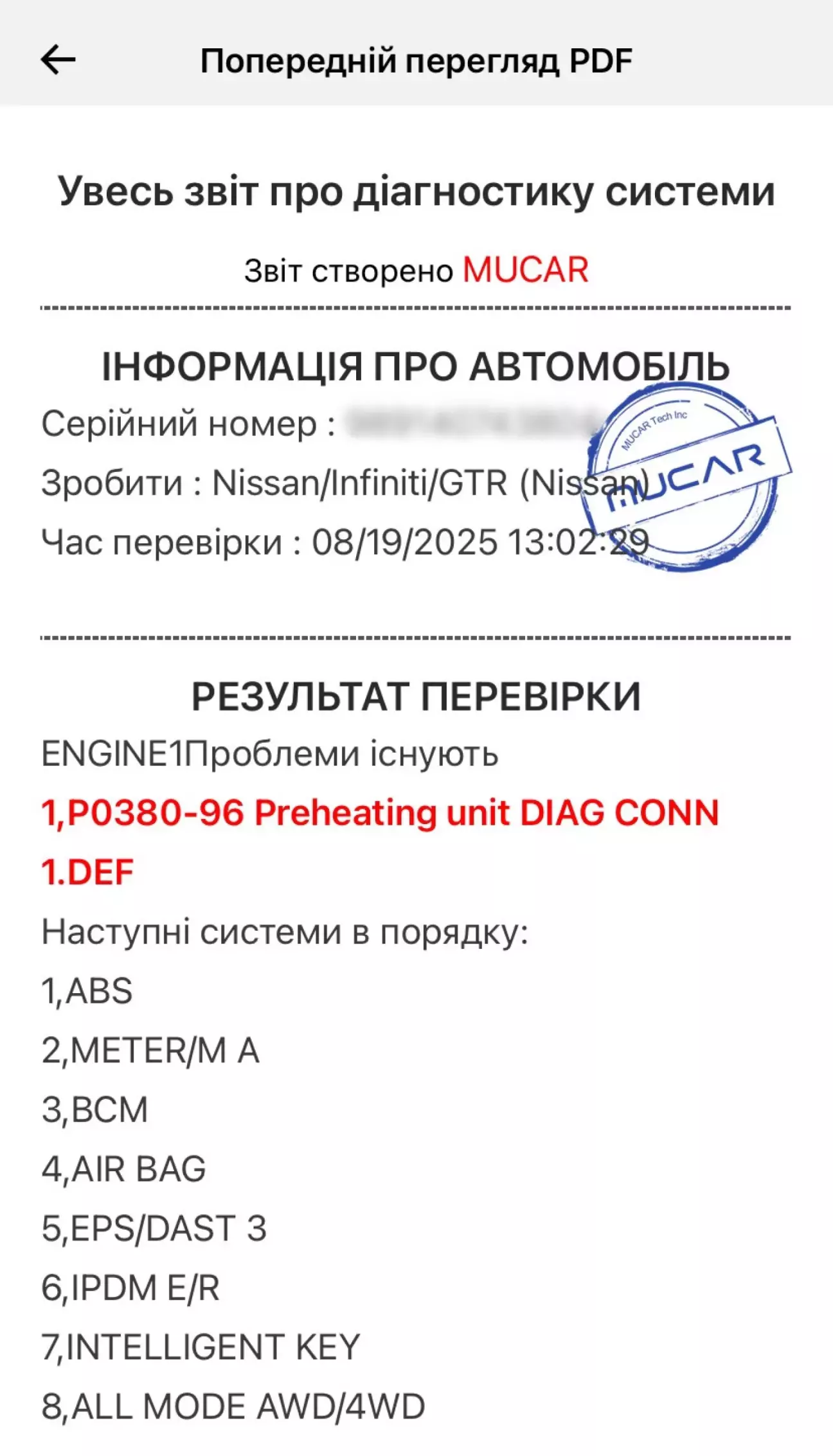 Чеку в приборці не було, але в пам'яті час від часу появлялась помилка P0380.